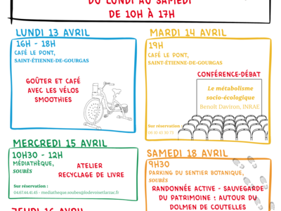 - Animation locale - Conte / Lecture - Exposition - Randonnée, balade - Repas avec animation - Stage / Atelier
