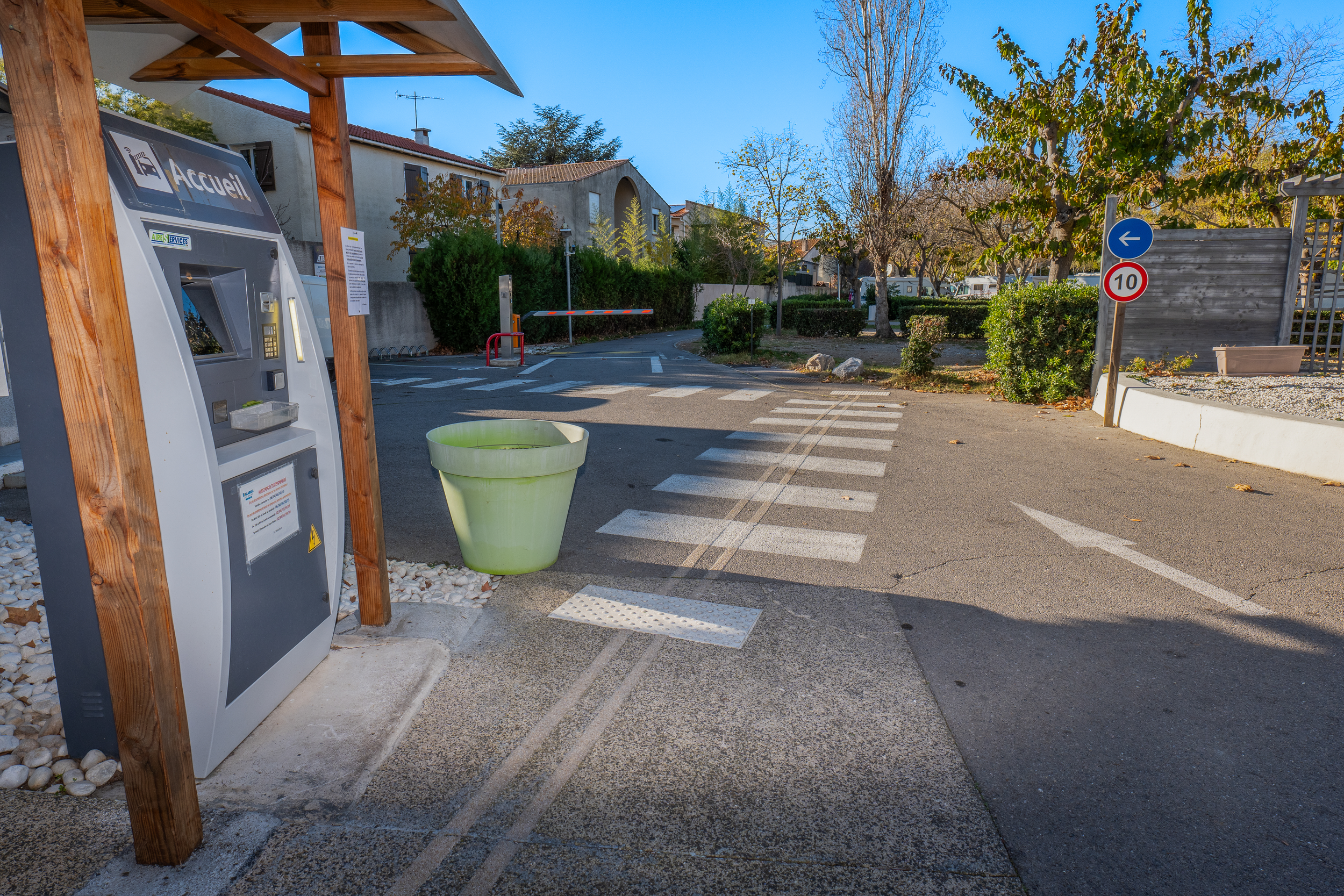 L’accès à l’aire est géré par un automate d’accueil 24h/24, le tarif inclus le stationnement & l’accès à tous les services.
