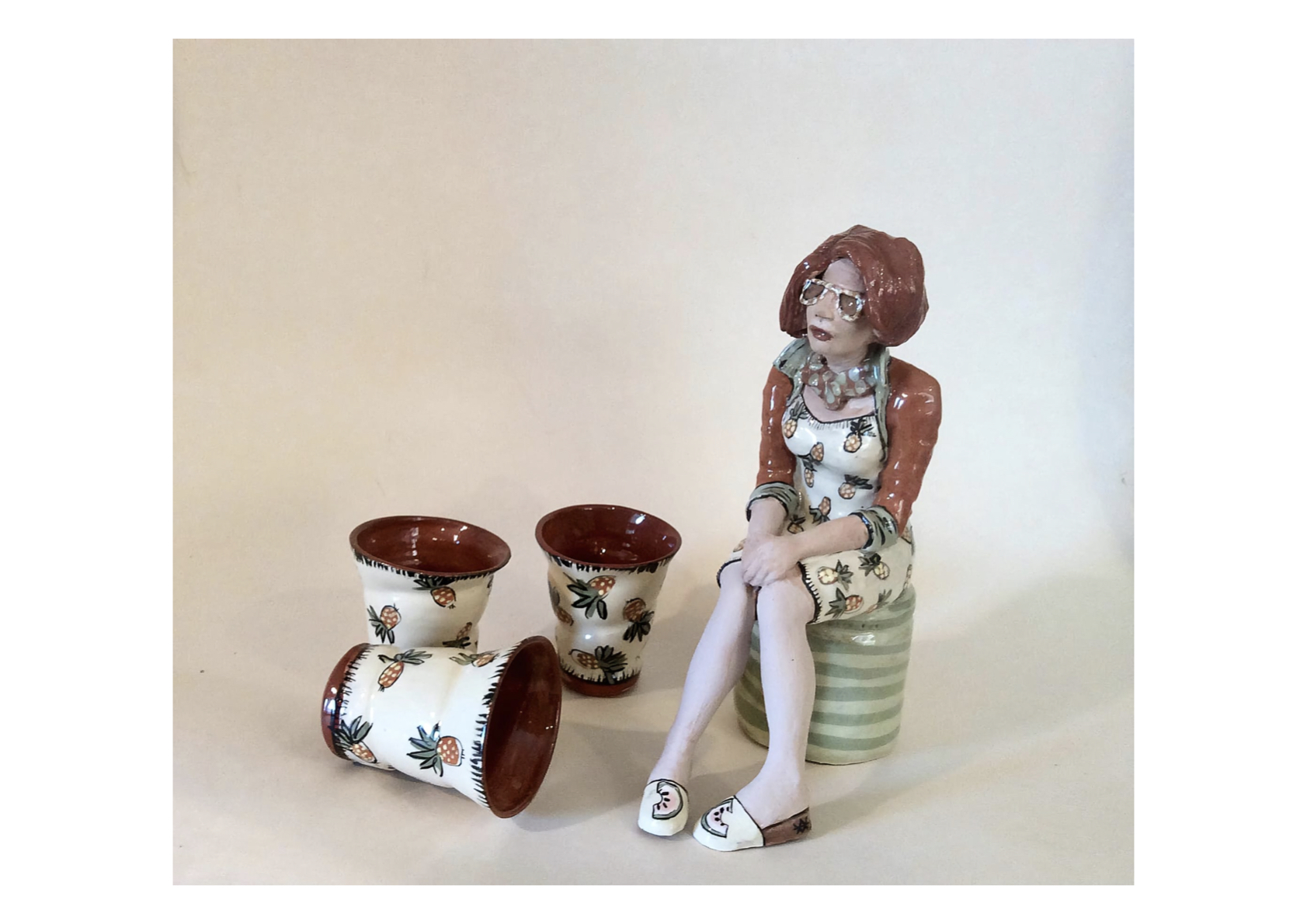 A Salasc, près du lac du Salagou , Amandine dans son atelier de poterie créée des pièces uniques, illustrées, ludiques et utilitaires.