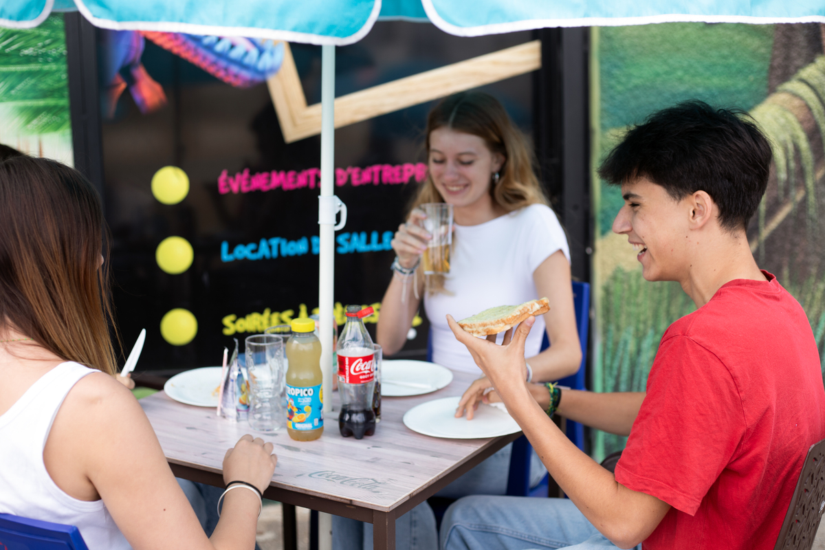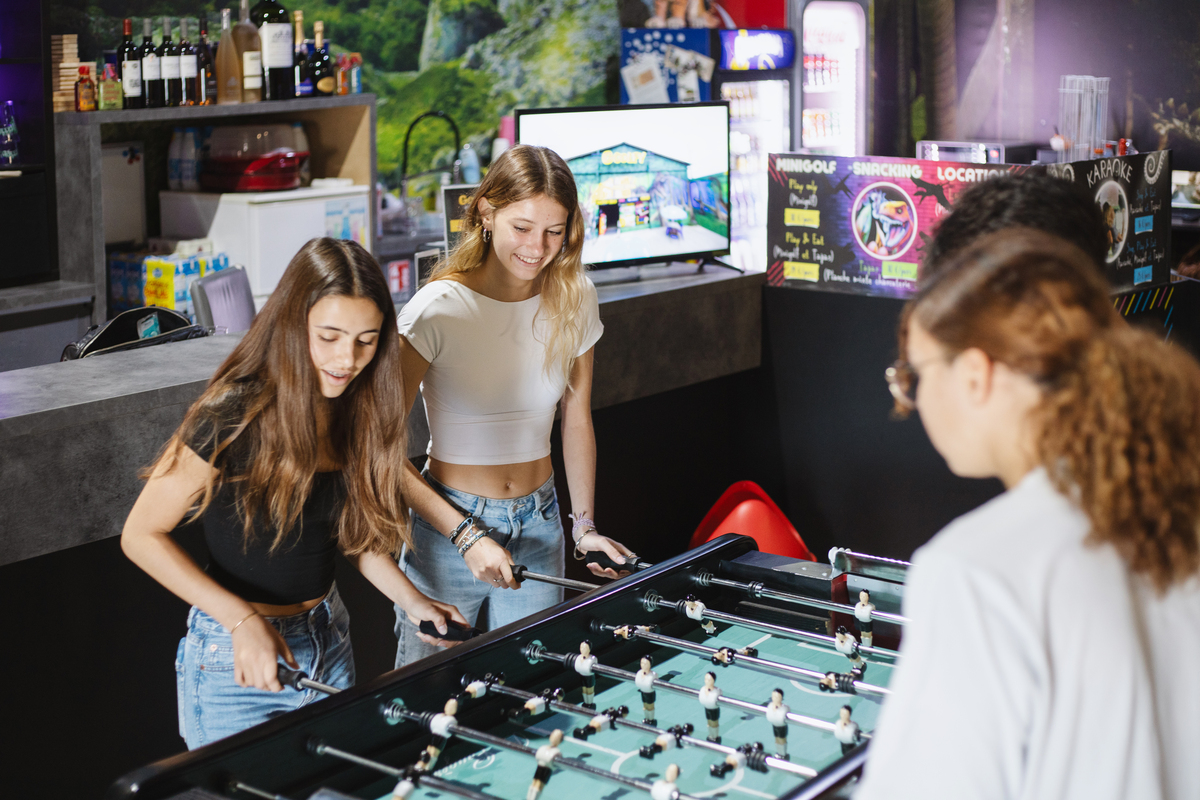 Une salle de 200 m² (billards, babyfoot, jeux enfants) et une terrasse ombragée de 90 m² sont à votre disposition pour un moment de détente devant un petit verre ou un petit en-cas, à tout moment de la journée.