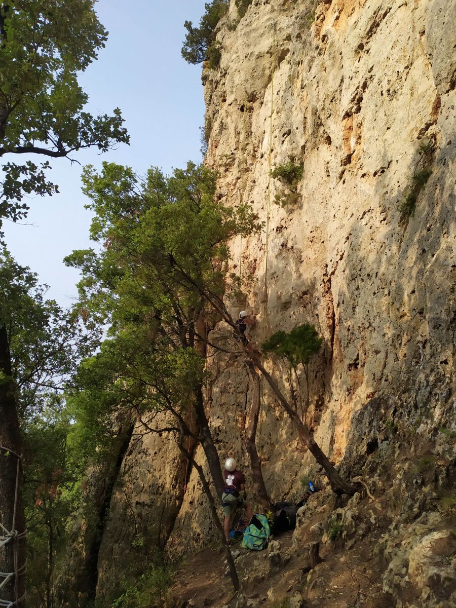 Le dernier secteur, le plus à gauche, dispose de 10 voies plus courtes, allant de 5b à 6b avec une majorité entre 5c et 6a.