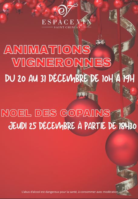 ANIMATIONS DE L’ESPACE VIN – MOIS DE DÉCEMBRE
