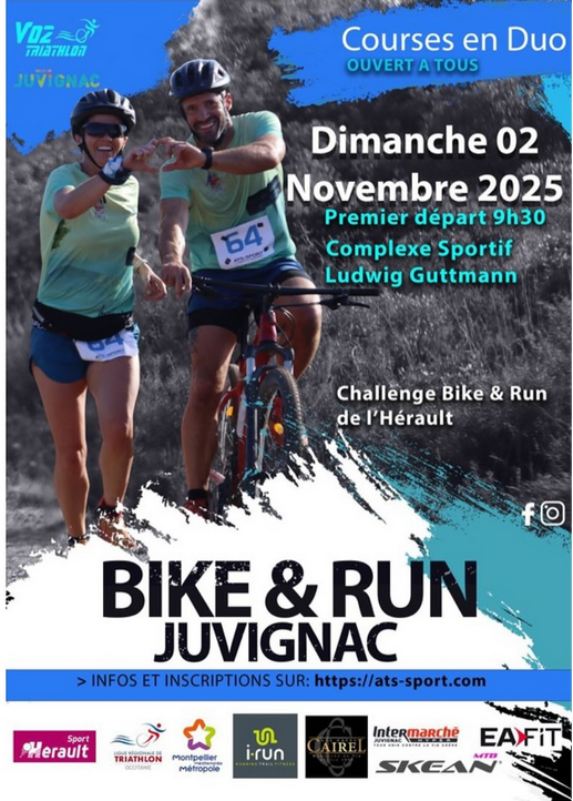 Le Bike and Run est organisé dimanche 2 novembre 2025 au complexe Guttmann de Juvignac. C’est une manifestation conviviale et familiale qui propose plusieurs courses adaptées à tous les âges et niveaux :