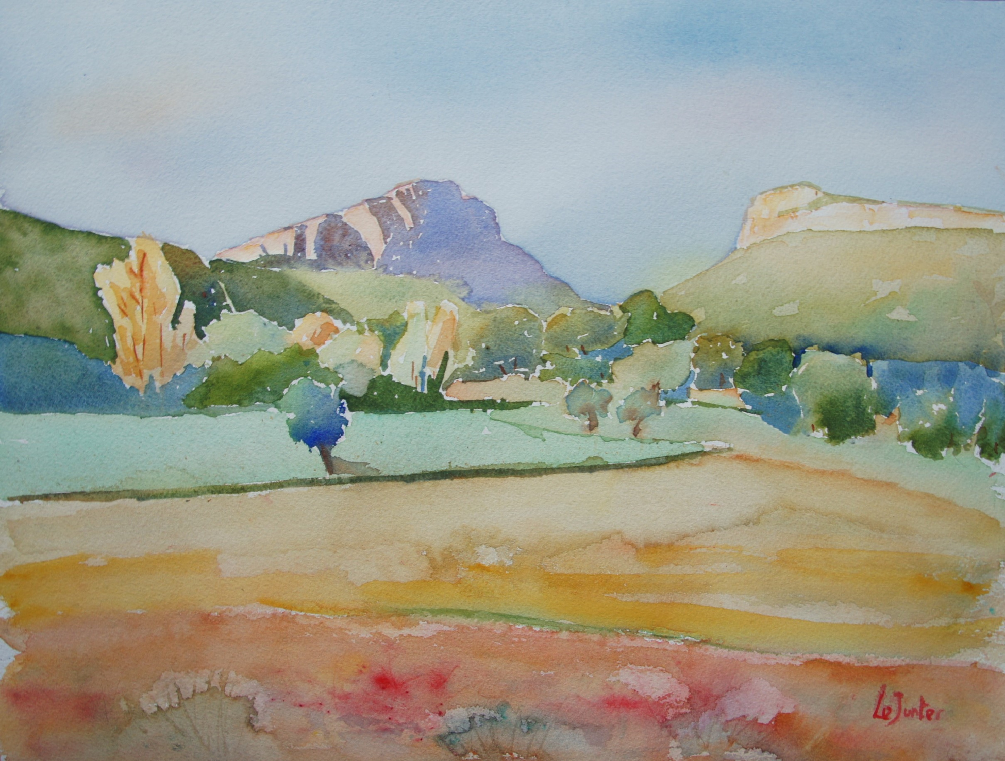 Son grand plaisir est d’arpenter le Pic Saint-Loup et ses environs en toutes saisons afin de réaliser sur place des aquarelles. L’aquarelle est un médium précieux pour ça : elle permet de saisir des instants fugaces car c’est un travail assez rapide et le matériel tient dans un sac à dos. Certaines d’entre elles servent ensuite d’études à l’artiste, pour des huiles, dans lesquelles il essaie de transcrire une émotion ressentie plutôt que la stricte réalité.