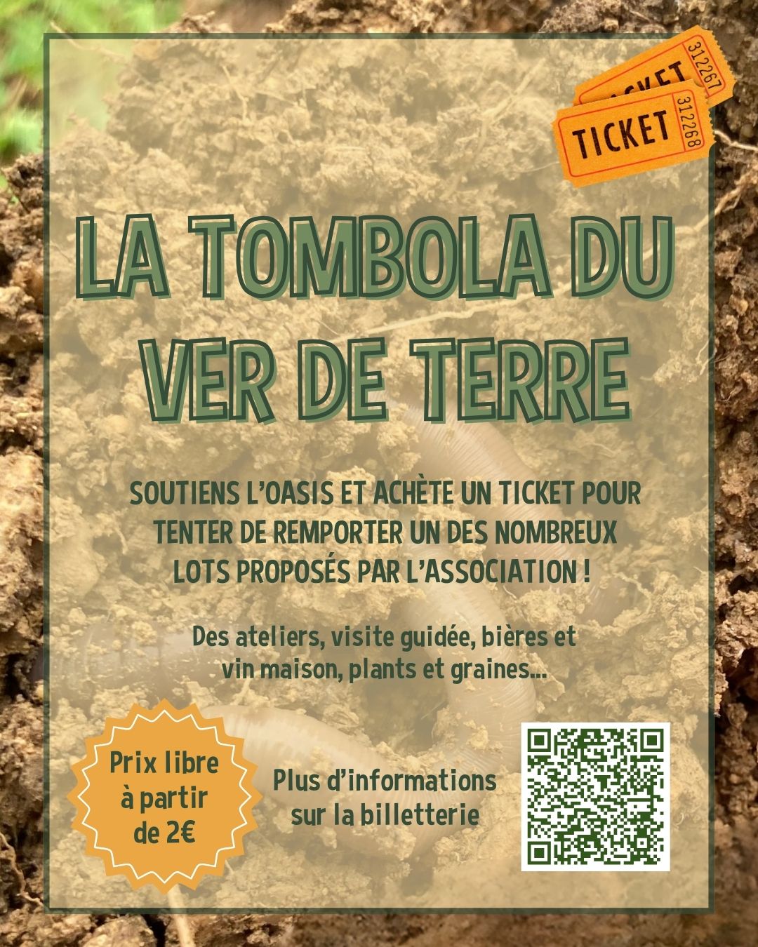 Tentez votre chance pour remporter un de nos nombreux lots cadeaux en participant à la tombola du ver de terre ! Vous retrouverez toutes les informations dans l’onglet tombola de la billetterie !