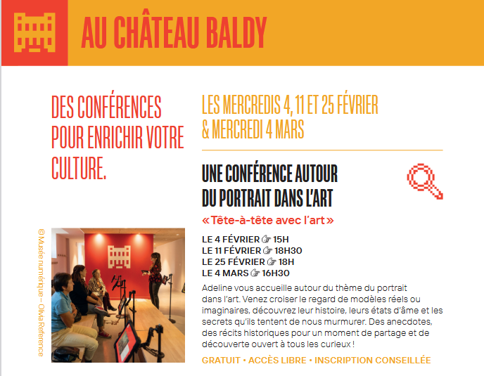 Adeline vous accueille autour du thème du portrait dans l’art. Venez croiser le regard de modèles réels ou imaginaires, découvrez leurs histoires, leurs états d’âmes et les secrets qu’ils tentent de nous murmurer. Des anecdotes, des récits historiques pour un moment de partage et de découverte ouvert à tous les curieux !