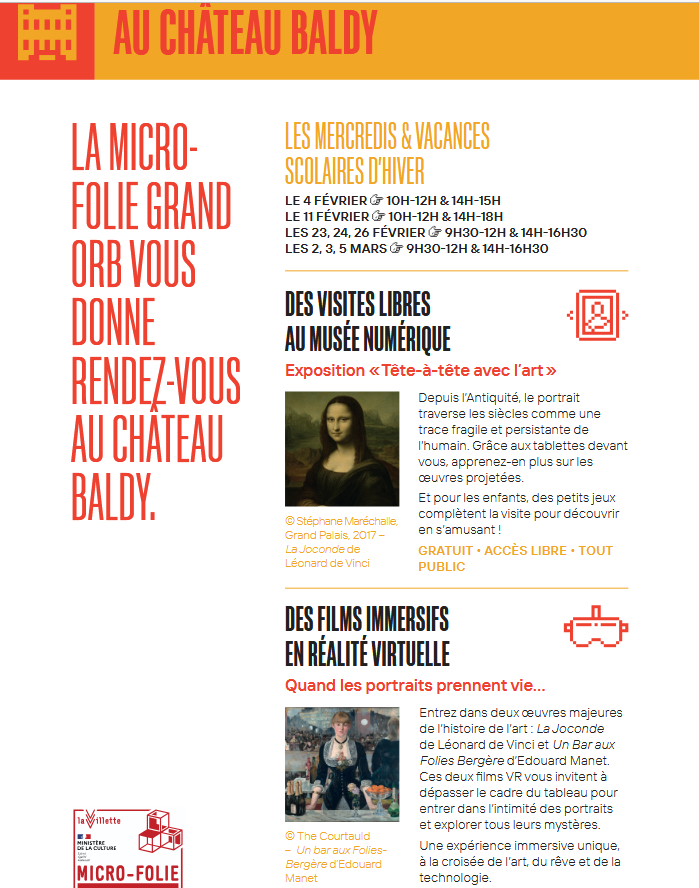 Entrez dans deux œuvres majeures de l’histoire de l’art : La Joconde de Léonard de Vinci et Un Bar aux Folies Bergère d’Edouard Manet. Ces deux films VR vous invitent à dépasser le cadre du tableau pour entrer dans l’intimité des portraits et explorer tous leurs mystères. Une expérience immersive unique, à la croisée de l’art, du rêve et de la technologie.
