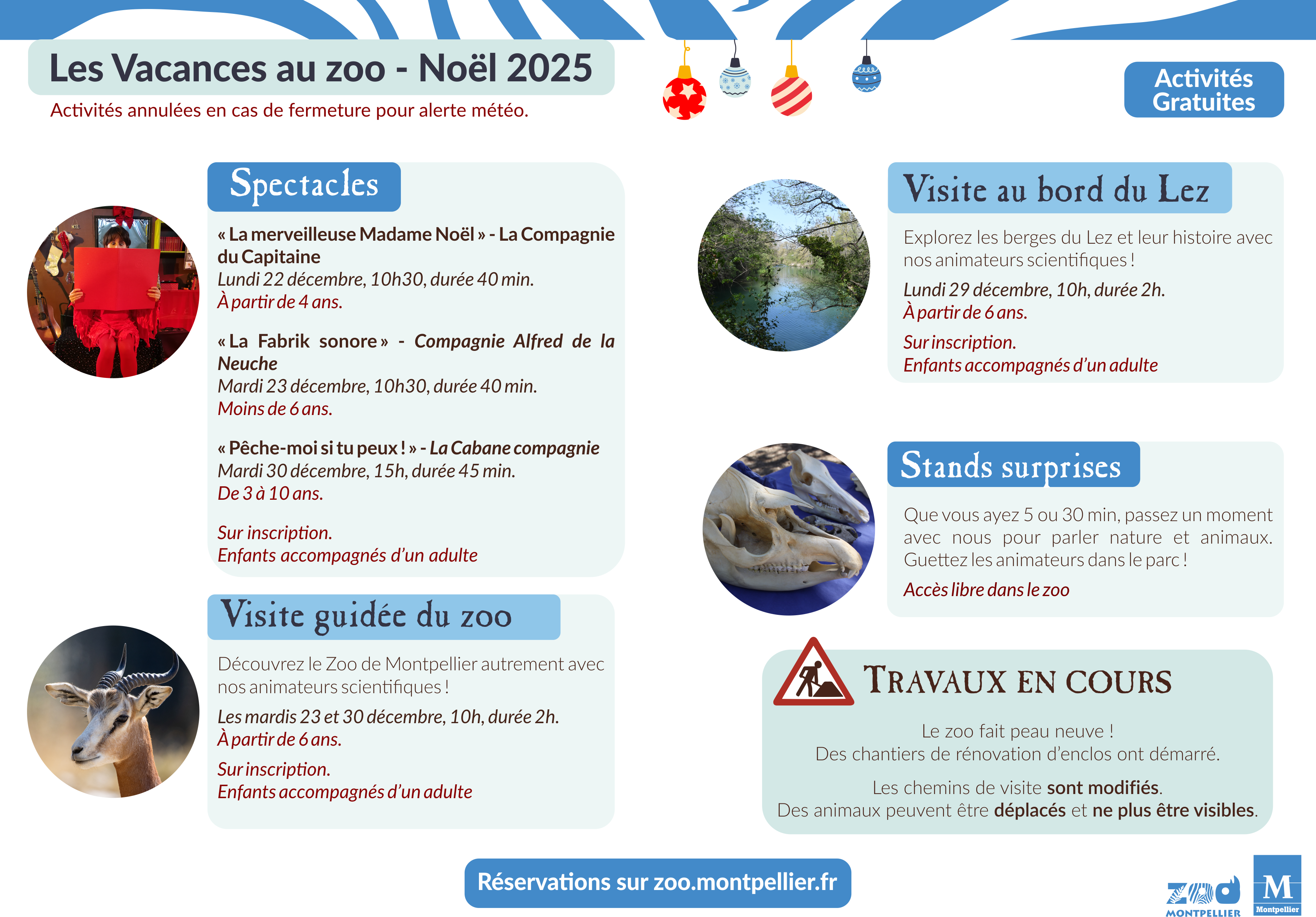 Site : zoo.montpellier.fr/content/programme-des-vacances-de-noel-2025