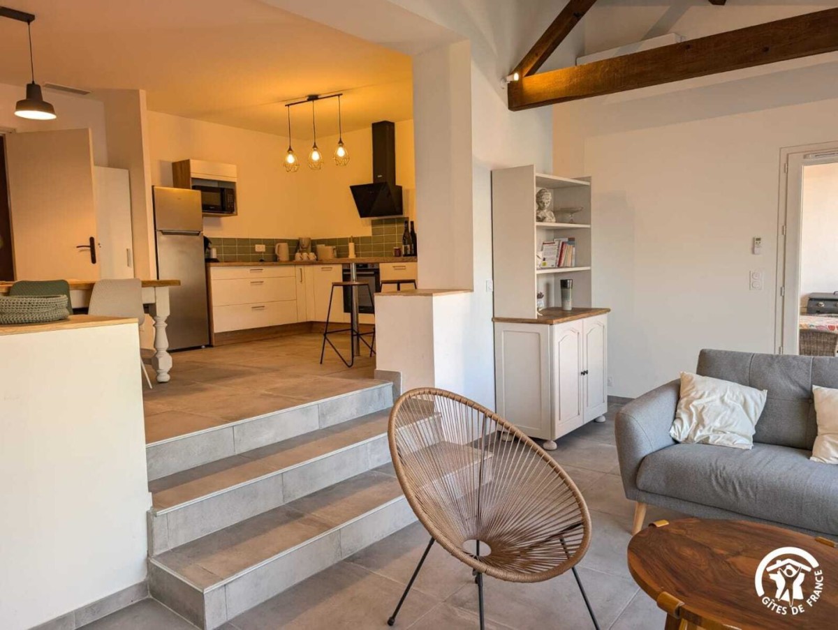 Aménagé dans une maison de village, ce logement rénové accueille confortablement jusqu’à 6 personnes. Situé à l’étage avec un accès jardin au même niveau.