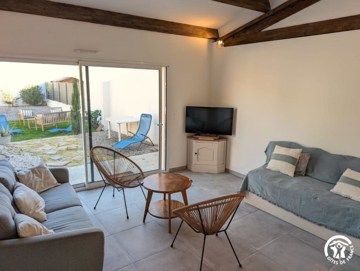 À l’extérieur, les vacanciers profiteront d’un jardin clos et privatif, équipé d’un salon de jardin, d’un terrain de pétanque. Il trouveront également une terrasse couverte disposant d’une cuisine d’été avec plancha, évier et grande table à manger.