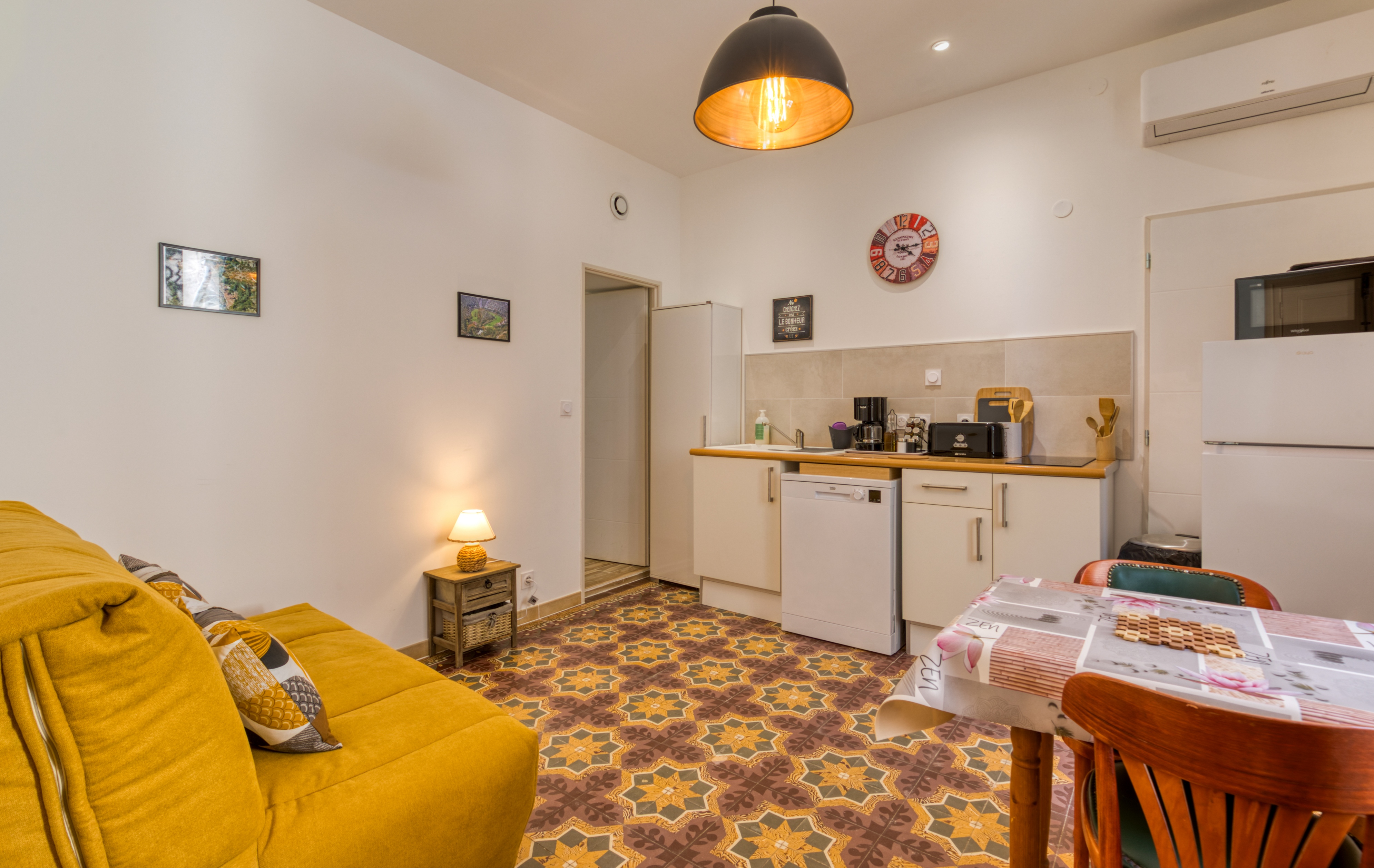 Franck propose dans le village d’Aspiran un studio qui réunit ce qu’il faut pour une halte détente. Dans une jolie maison de pierres apparentes, on retrouve une ambiance mi-vintage mi-moderne avec des matériaux des années 70 mêlée à une décoration moderne pour le confort de chacun. Aux beaux jours, on profite de la terrasse et du spa en entendant les cigales chanter !