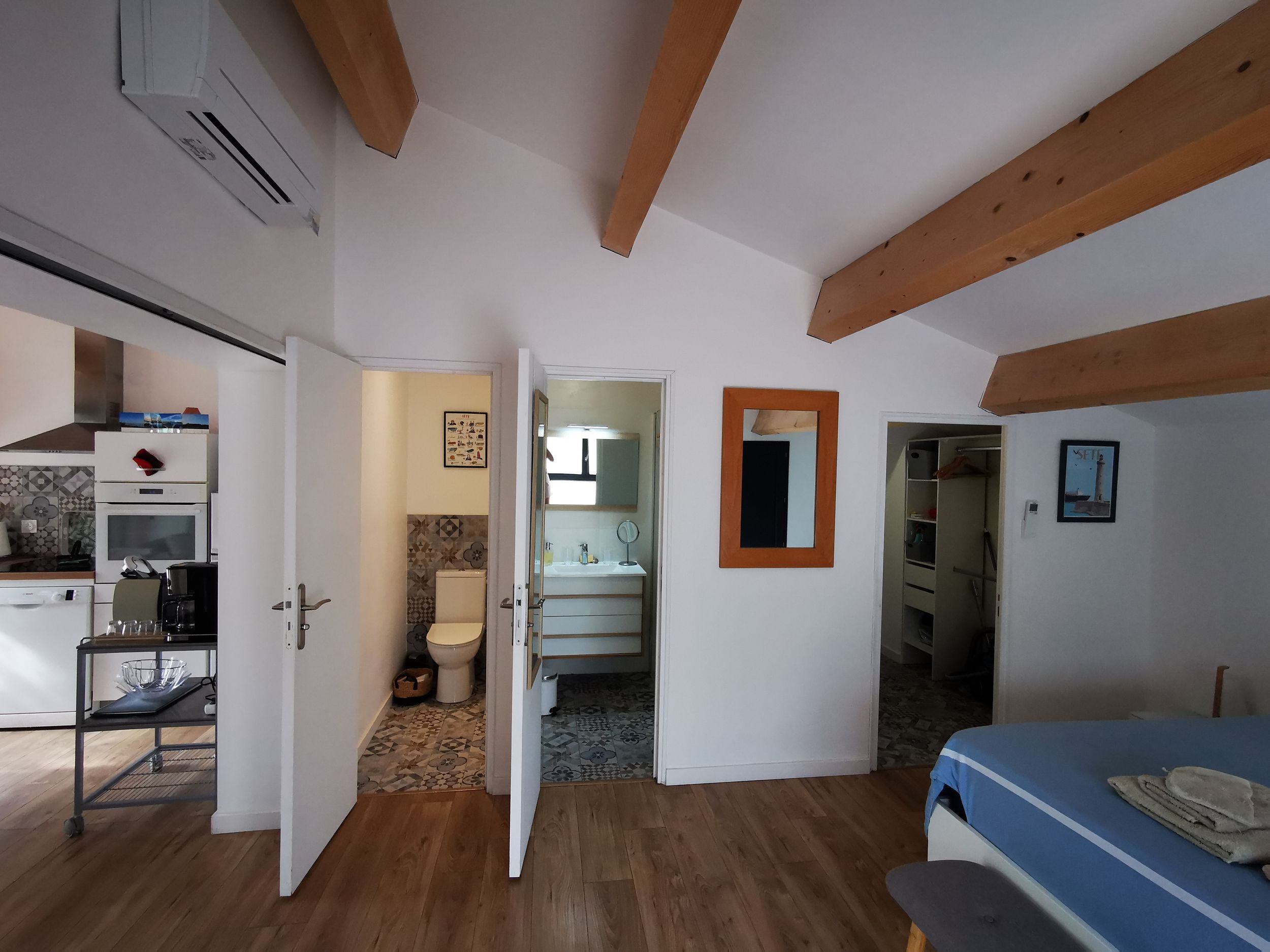 Très lumineux , chambre spacieuse (lit en 160 de haute qualité), et canapé convertible dans salon cuisine.