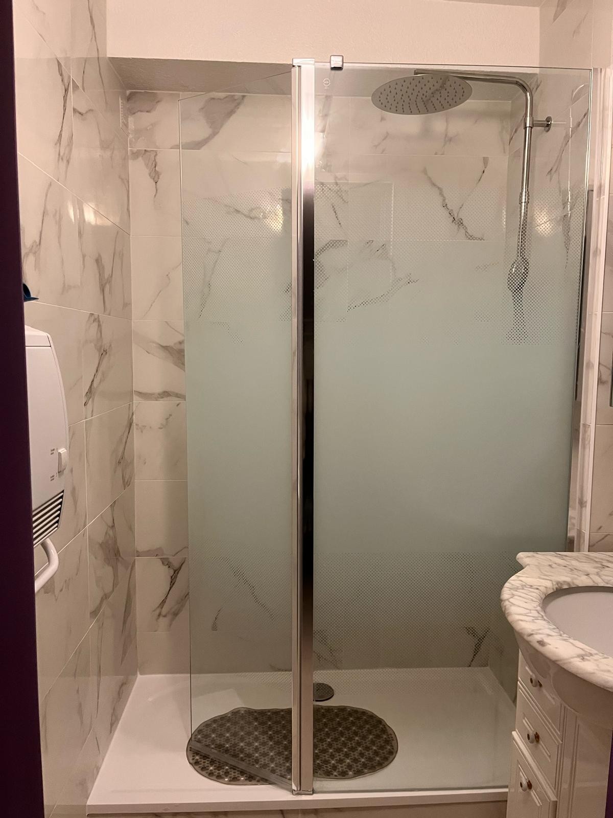 À l’entrée, un coin nuit avec deux lits superposés en 90 cm accueille les enfants ou les invités. La salle d’eau entièrement rénovée en 2025 dispose d’une grande douche moderne, et les WC sont séparés pour plus de confort.