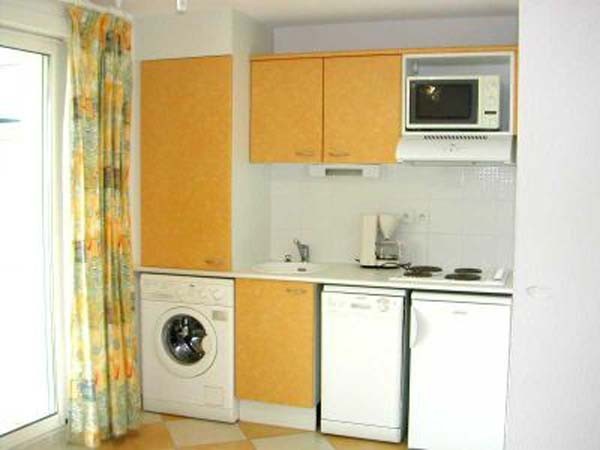 Appartement 2 Pièces Cabine de 31 m² environ, pour 4/6 personnes, exposition Sud-Ouest . Il comprend un séjour avec un canapé convertible ( couchage pour 2 personnes) et 1 TV, table repas et chaises, kitchenette équipée avec micro-ondes, lave-vaisselle et lave-linge, 4pl.électr, réfrigérateur, vaisselle pour 6 pers. Une chambre avec lit 140 et grand placard, une cabine avec 2 lits superposés, salle d’eau avec douche et wc.