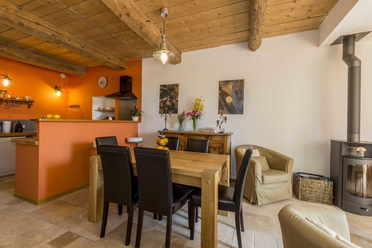 Chauffage climatisation réversible dans séjour, chauffage électrique, poêle à bois, sèche-linge, TV, draps et linge de toilette fournis, ménage fin de séjour à la demande, matériel bébé sur demande.