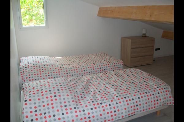 Maison mitoyenne au rez de chaussée, de 50 m² pour 5 personnes. Séjour sur cuisine ouverte, aménagée et équipée. Télévision écran plat, Cafetière, Grille-pain, Bouilloire, Micro-onde,Four Multi-fonctions, Réfrigérateur, Congélateur, Lave-linge privé avec étendoir, Planche à repasser et Fer à repasser, Lave-vaisselle. Chambre Indépendante : 1 lit de 160 cm x 200 cm,une armoire dressing et une table de nuit (2 tiroirs) Mezzanine : 2 lits de 90 cm x 200 cm(pouvant être réuni pour faire un couchage double) avec commode de rangement (3 tiroirs), , Dans le séjour : canapé convertible en couchage de 160 cm x 190 cm. Salle d’eau avec douche grande vasque, meuble sous lavabo, sèche serviettes.Terrasse, Piscine, Salon de jardin, Barbecue. Stationnement privé à l’intérieur de la propriété clos de mur et portail électrique.Ce gîte est neuf ainsi que tout son aménagement.C’est un endroit idéal pour faire une pose en famille où nous vous accueillerons chaleureusement en se souciant de votre confor
