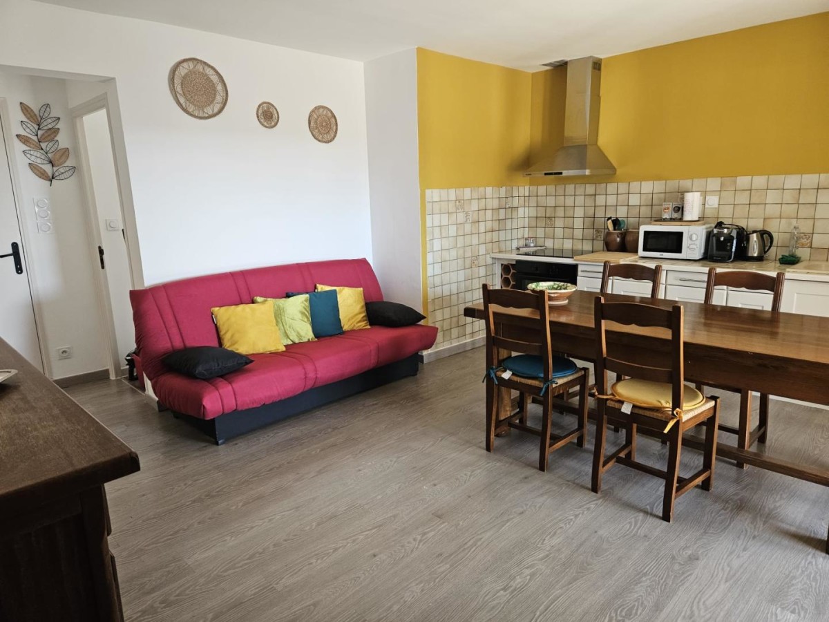 À l’extérieur, vous profitez d’un jardin partagé, d’une terrasse couverte équipée d’un salon de jardin, idéale pour vos repas en plein air, ainsi que d’une piscine commune extérieure ouverte en saison. Le parking se situe à l’intérieur de la propriété. Pour votre confort, un lave-linge est à votre disposition. À noter : les linges de toilette ne sont pas fournis et un chien beauceron très amical vit sur place, très apprécié des précédents vacanciers !
