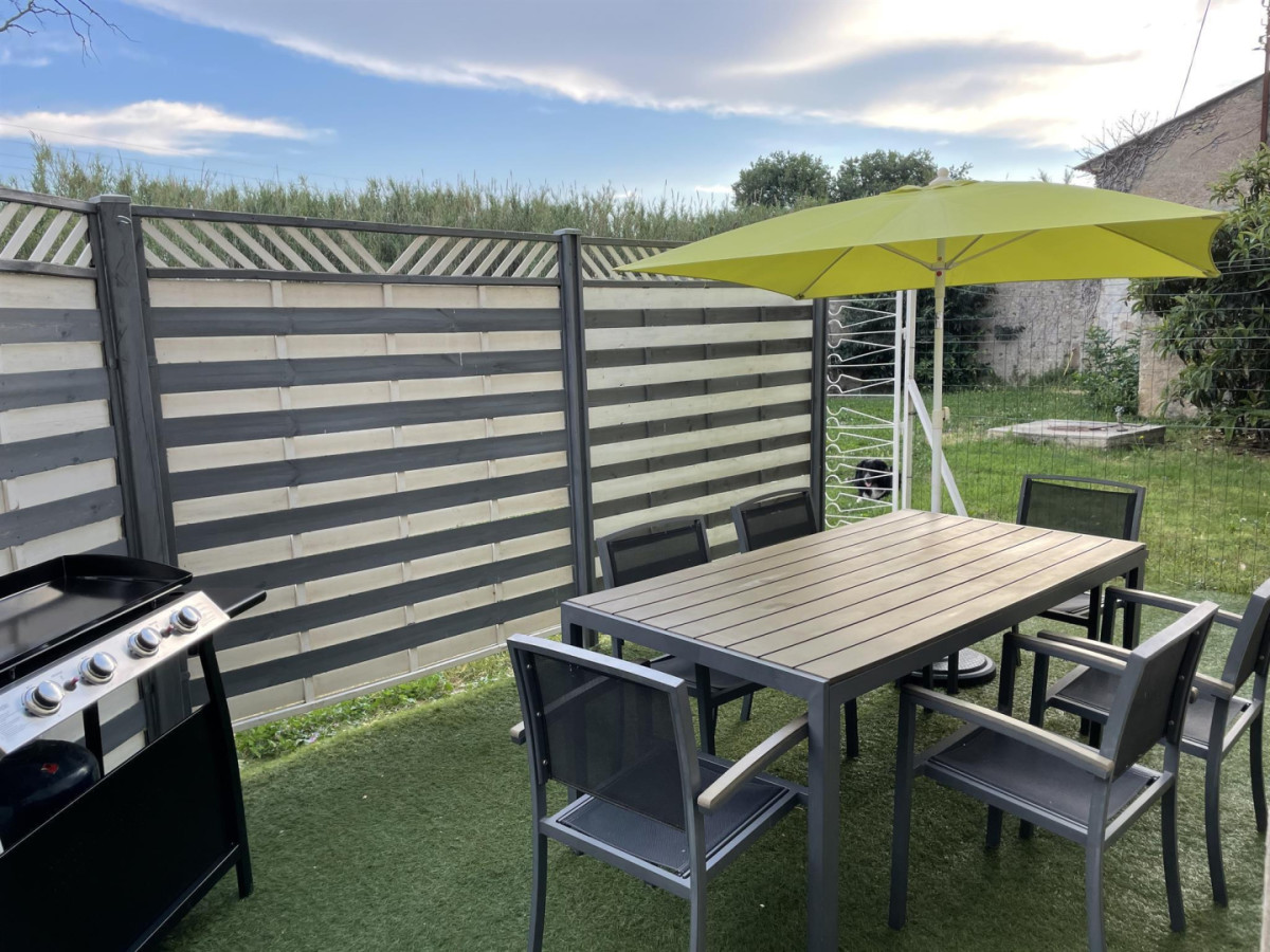 – Terrain commun avec espace privatif : Salon de jardin, Air de jeux extérieur, Plancha à gaz
