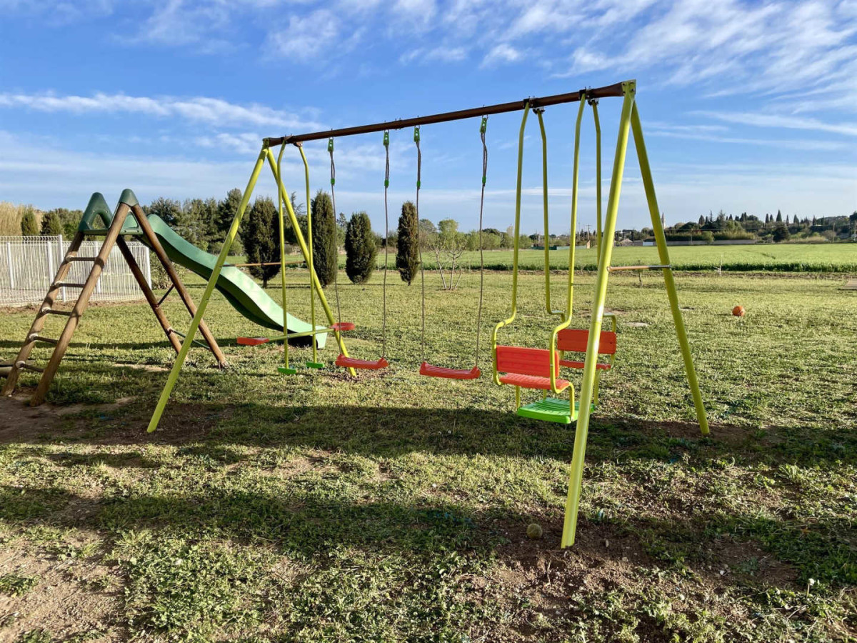 – Terrain commun avec espace privatif : Salon de jardin, Air de jeux extérieur, Barbecue.