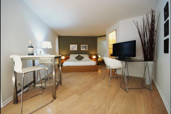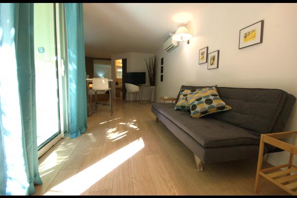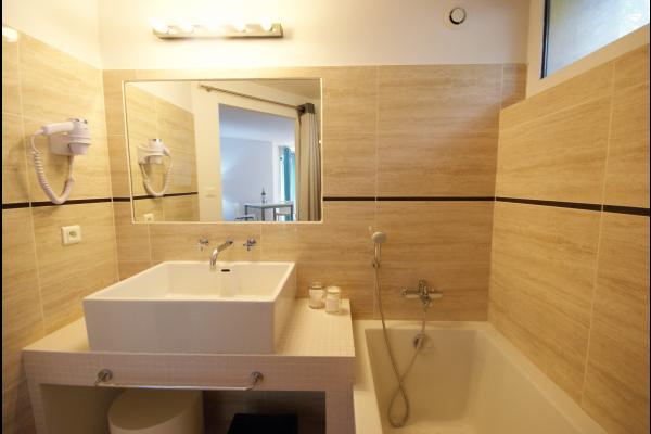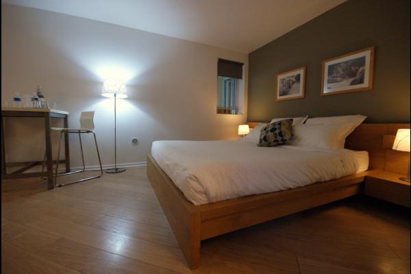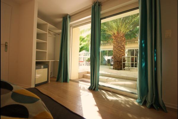 D’une superficie de 35 m², cette suite dispose d’un grand lit de 160 cm, dressing, bureau, salon avec canapé convertible, coin repas, salle de bain et wc séparé privé. La chambre est ouverte sur une jolie terrasse avec sa baie vitrée et volet roulant.
