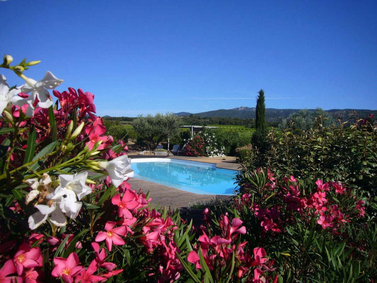 Le chemin d’accès s’arrête à l’entrée du Domaine, la route et les premières maisons sont à 1 km, vous n’entendez que le silence, les oiseaux et les cigales et ne voyez que vignes, oliviers et montagnes.