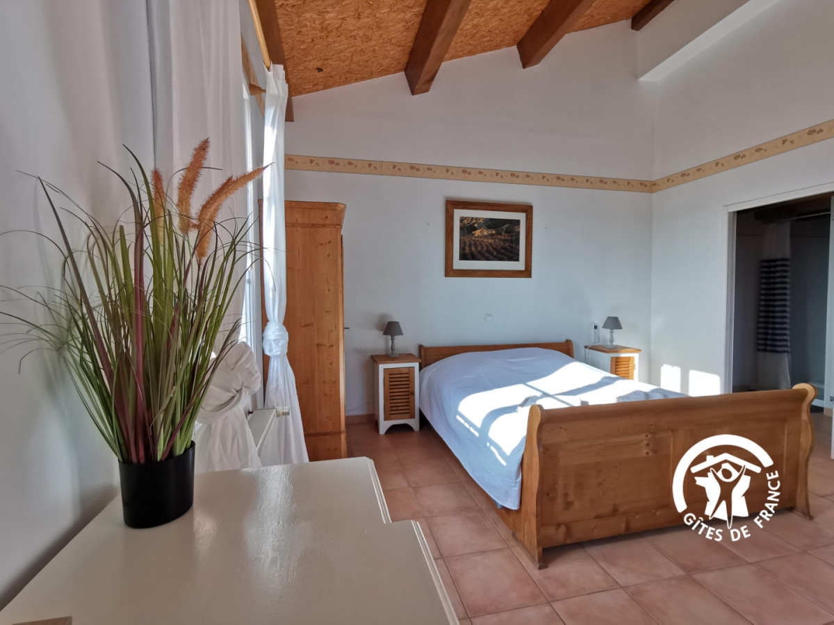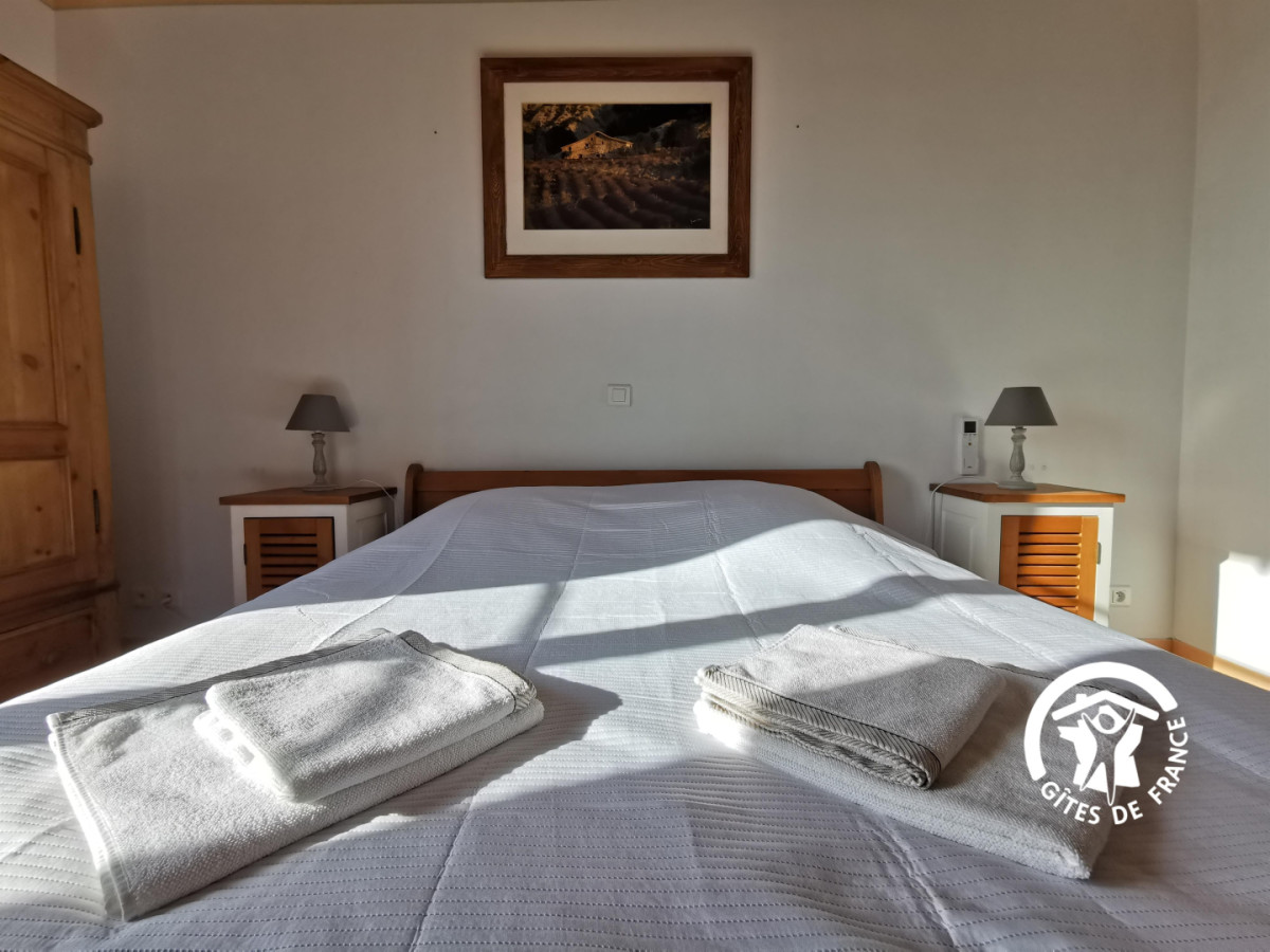 Une chambre pour 2 personnes se trouve à l’étage avec 2 lits 90×190 et une salle d’eau privative avec wc. Le gîte dispose également d’un WC indépendant au rez-de-chaussée.