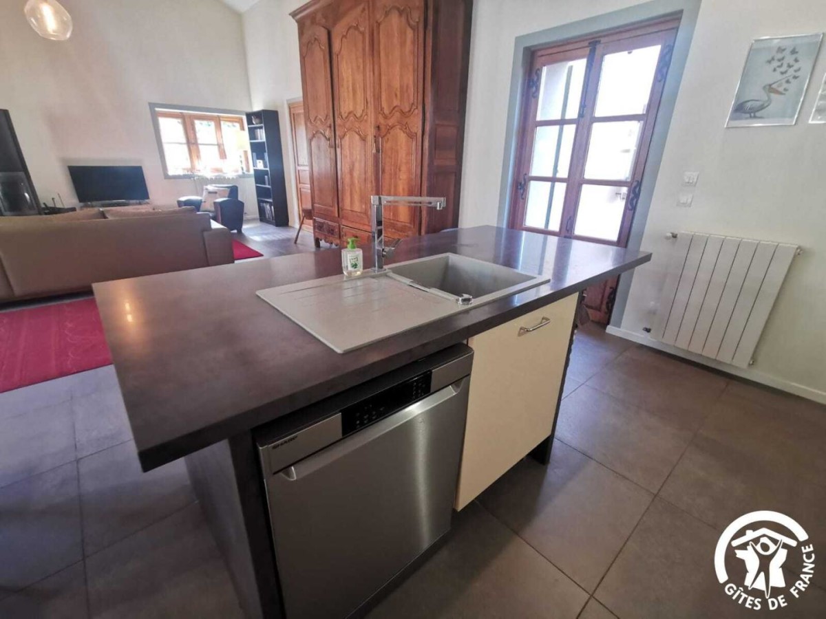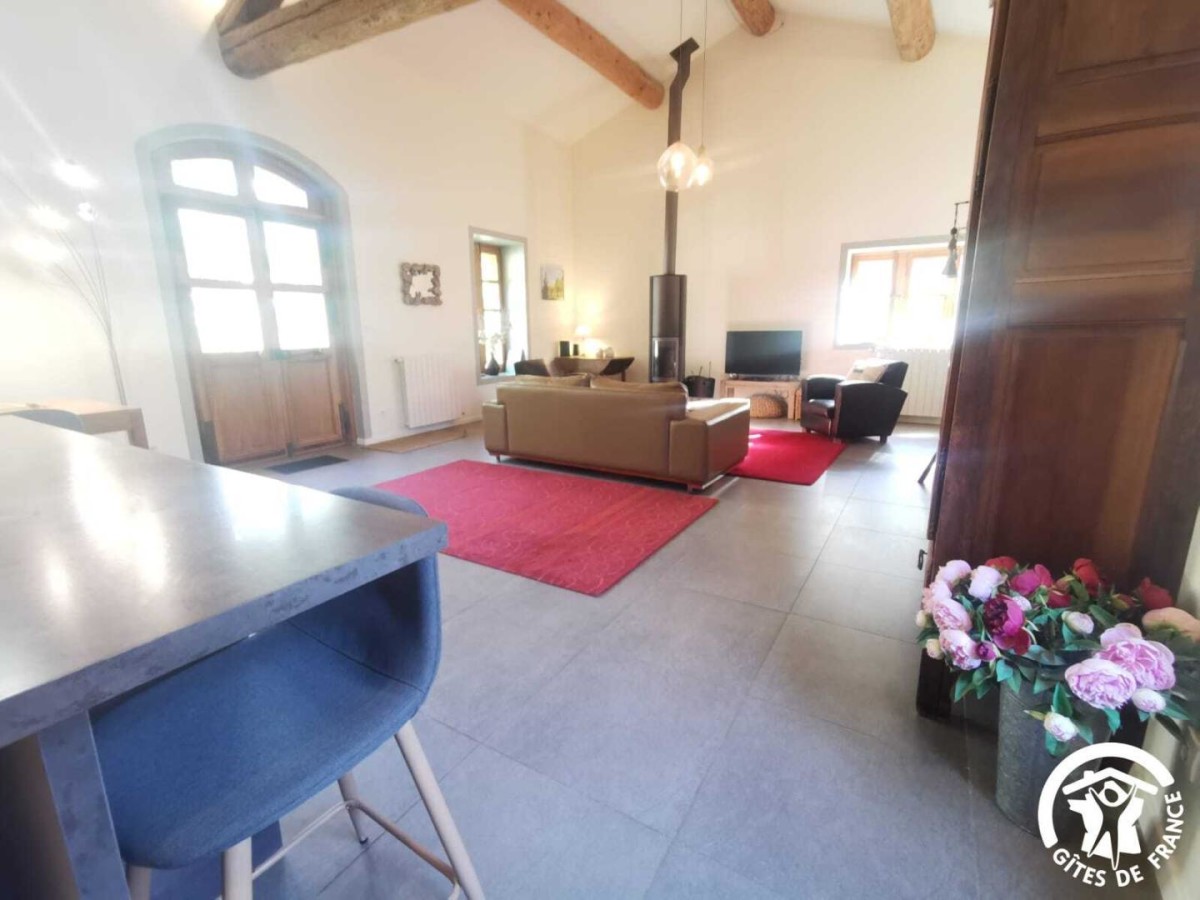 – Une belle pièce à vivre spacieuses avec un séjour confortable avec canapé et fauteuils, télévision et poêle à bois, un espace salle à manger et une cuisine moderne et très bien équipée : four, micro-ondes, réfrigérateur, lave-vaisselle, machine à café, bouilloire…
