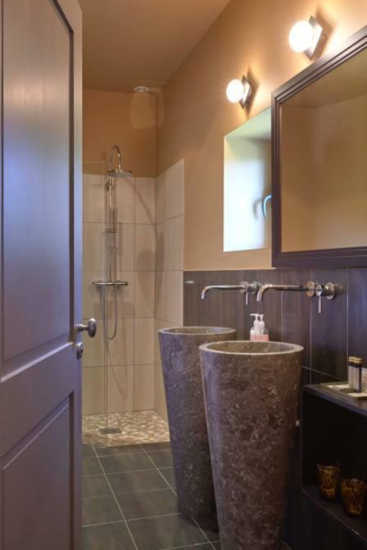 Rez-de-chaussée. : suite 2 ou 3 pers. avec petit salon (1 lit 210X210, canapé ou lit 90X190), salle d’eau, wc indépendant.