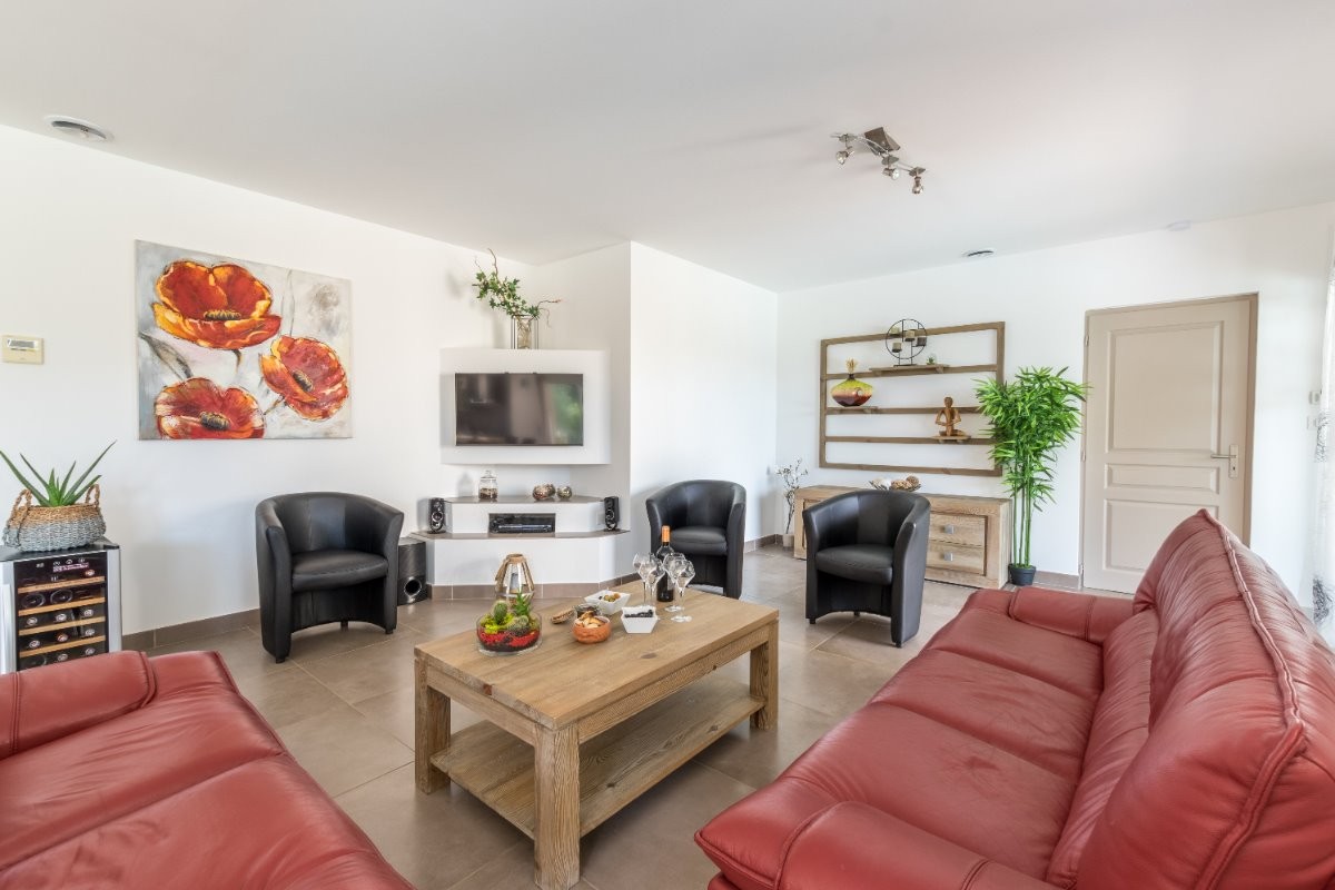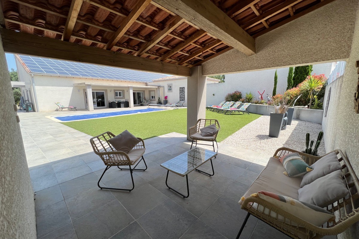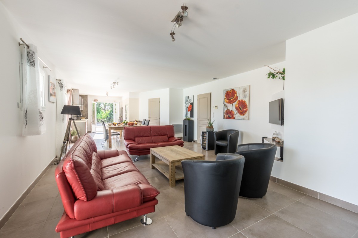 La Sérannne, Villa pour 8 pers., récente est très confortable, climatisée et décorée de façon moderne et chaleureuse où vous pourrez vous détendre après une journée passée au bord de la piscine ou en balade.