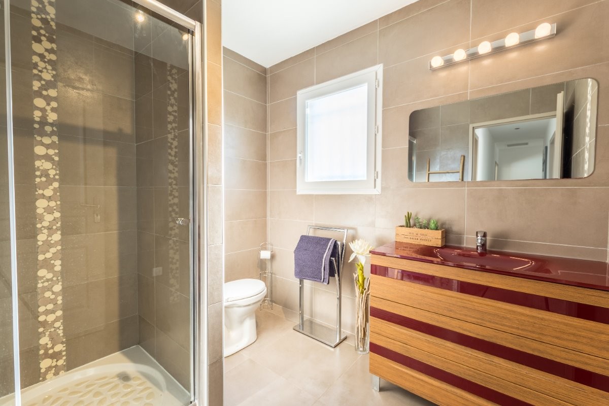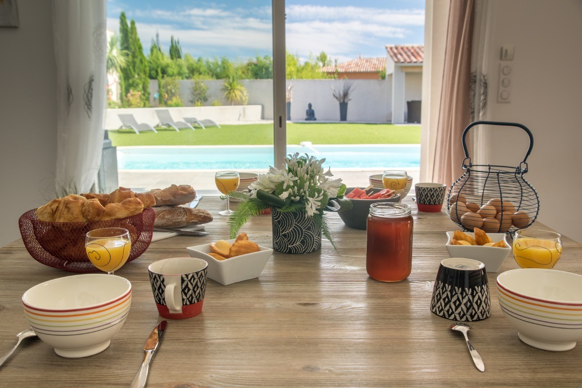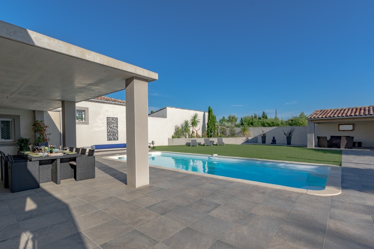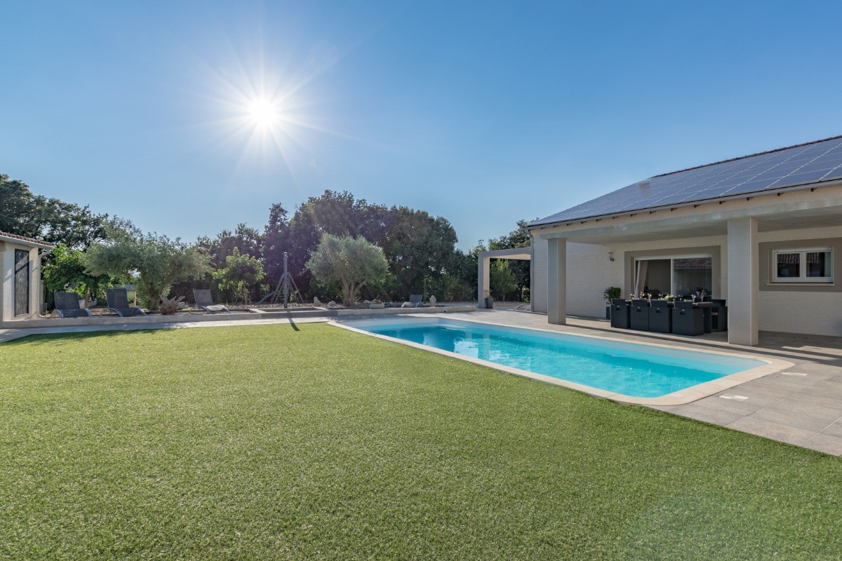 La Sérannne, Villa pour 8 pers., récente est très confortable, climatisée et décorée de façon moderne et chaleureuse où vous pourrez vous détendre après une journée passée au bord de la piscine ou en balade.