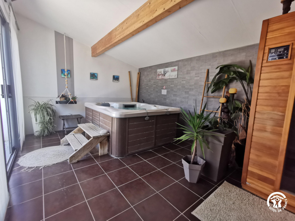 Profitez de l’espace extérieur avec salon de jardin, jardin, piscine chauffée (10x5m, ouverte de mai à fin septembre), un espace bien-être annexe avec spa et jacuzzi inclus dans le tarif.