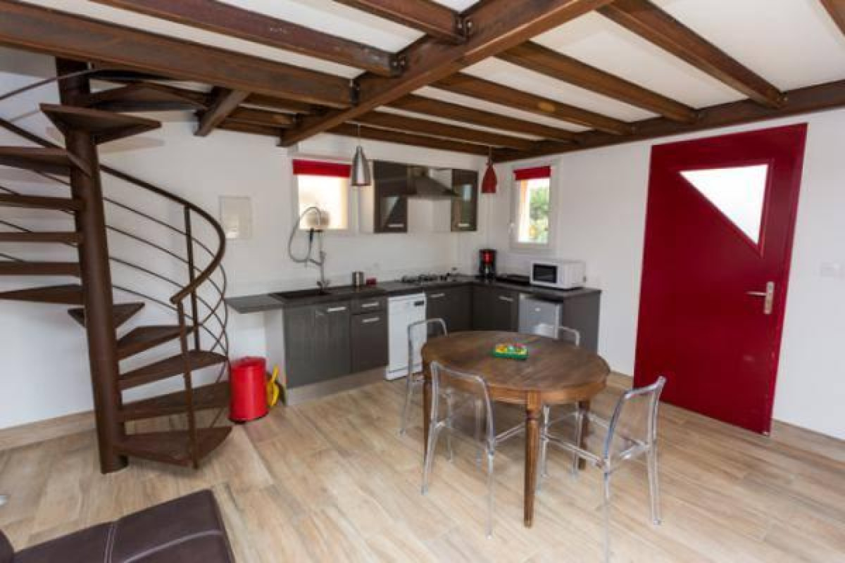 Dans cette charmante maison, qui possède une entrée privative, vous retrouverez au rez-de-chaussée une belle pièce de vie avec du mobilier de qualité, avec une cuisine entièrement équipée ainsi qu’un espace salon pour vous détendre à deux en lisant un livre ou en profitant du Wifi proposé dans le gîte. A l’étage, vous retrouverez une grande chambre mansardée, très lumineuse de part ses deux fenêtres avec une jolie vue sur l’extérieur, avec un grand lit 180×200 cm modulable en 2 lits 90×200 cm. Le gîte possède également une salle d’eau avec WC.