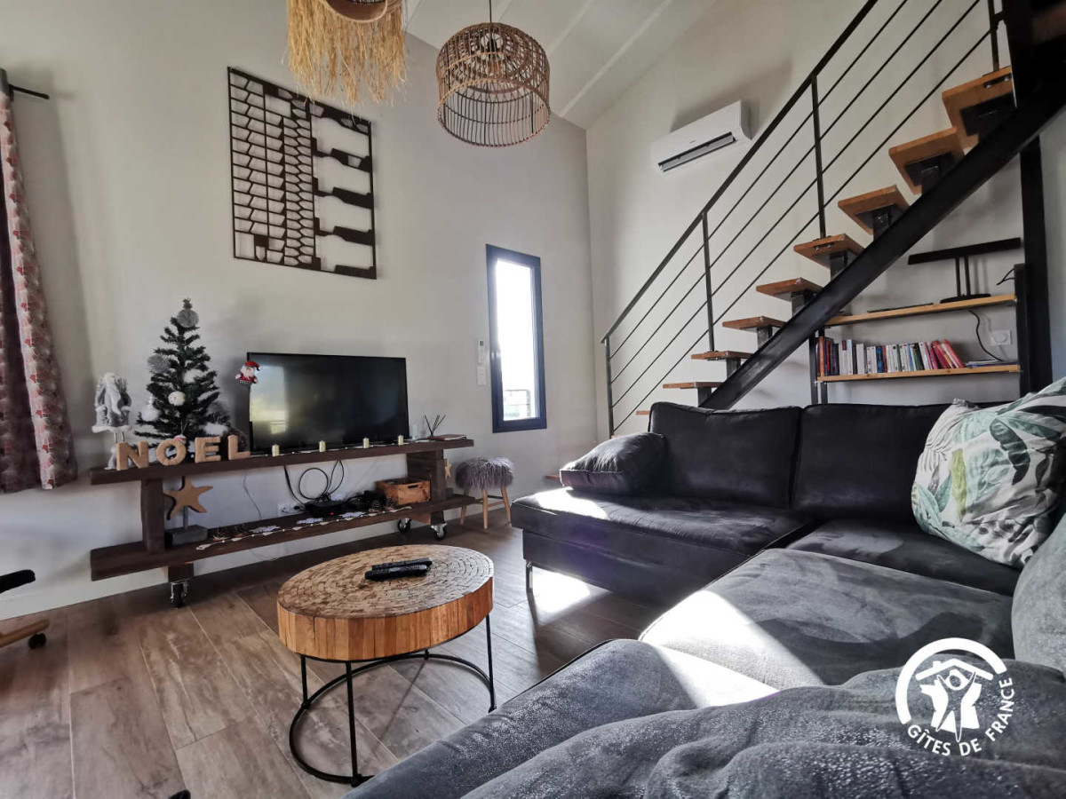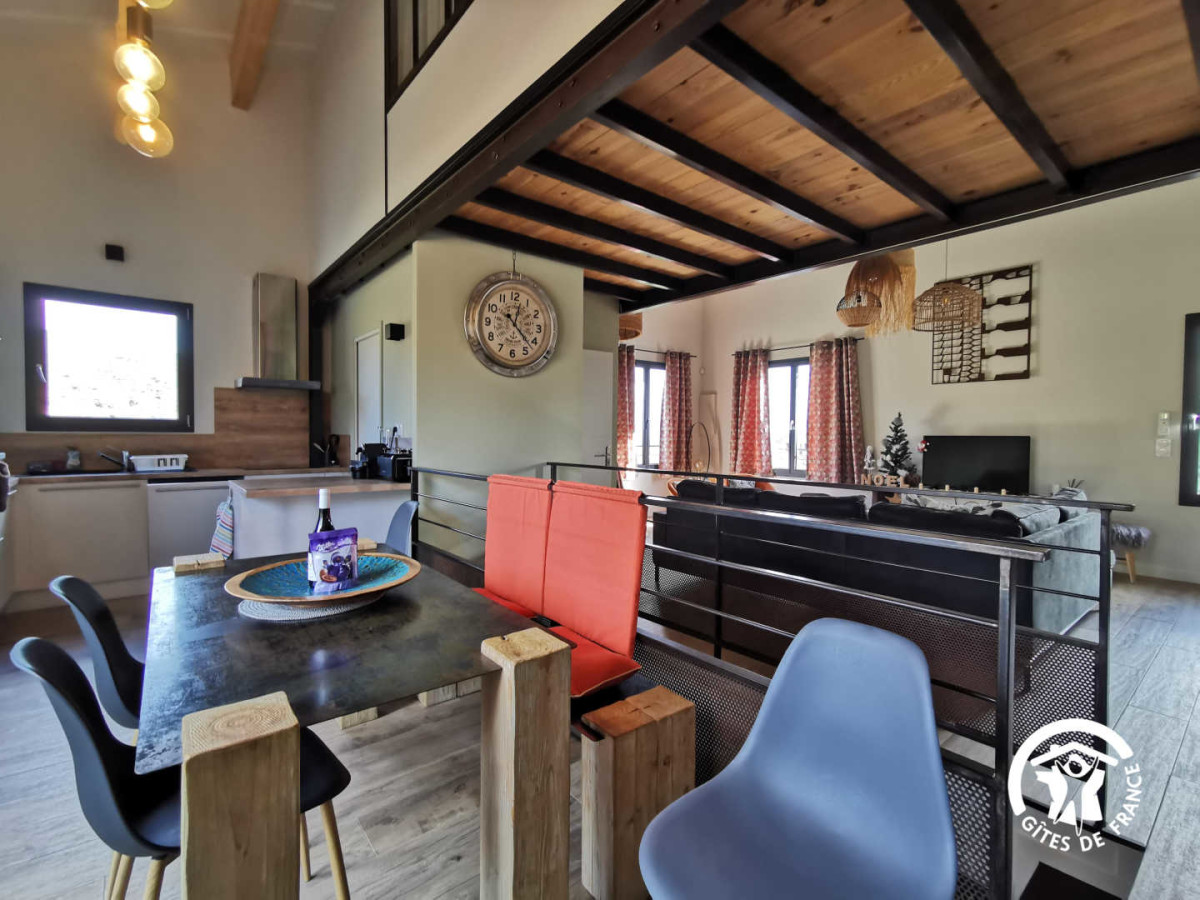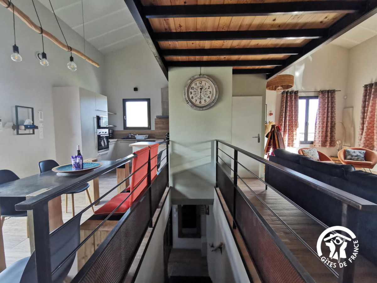 Au 1er étage vous aurez accès à une pièce à vivre ouverte sur le salon, la salle à manger et le coin cuisine. Vous trouverez au 2e étage une mezzanine composée d’une chambre pour 2 personnes (lit 140×190) avec sa salle d’eau attenante.