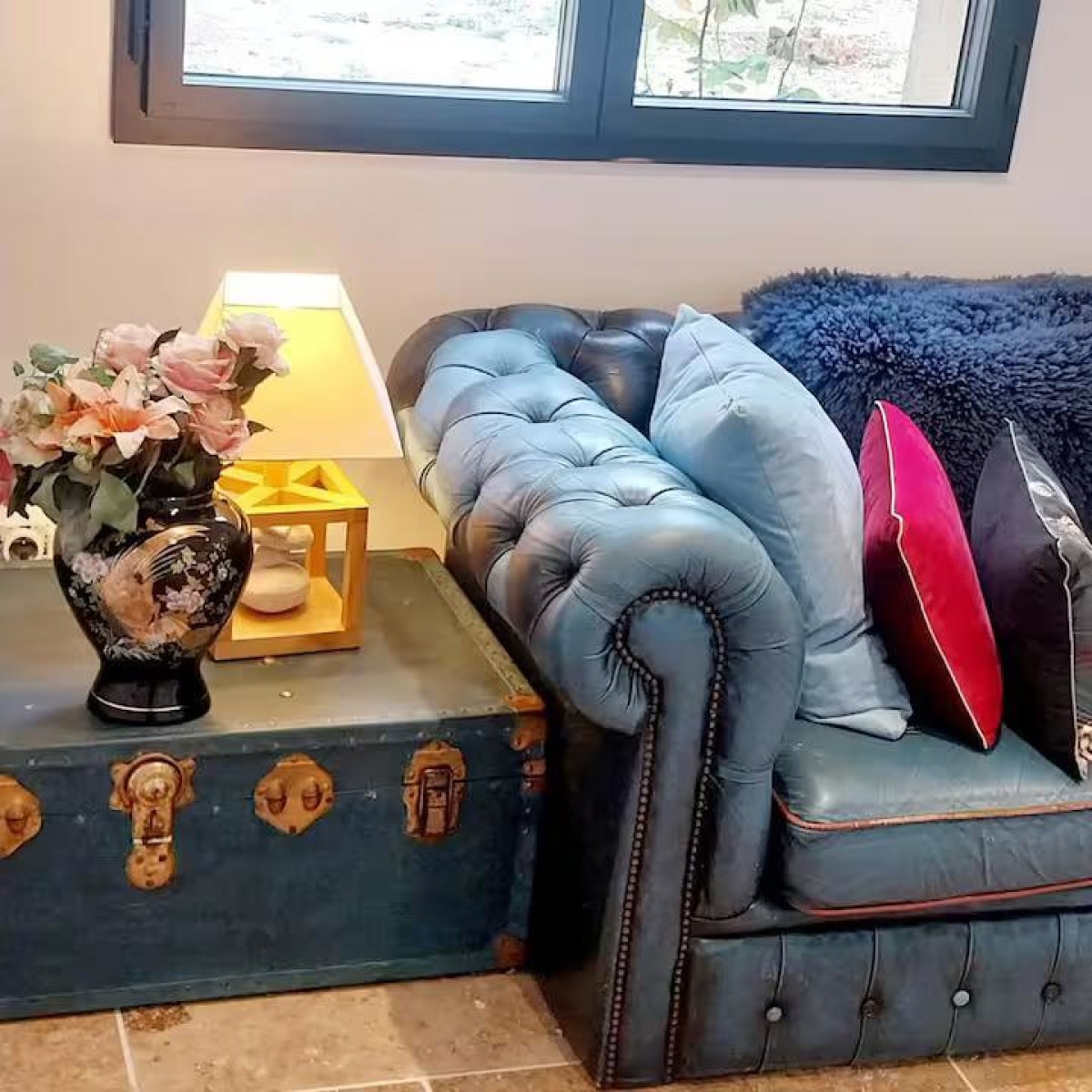 – Une belle chambre de 15m2 en pierres apparentes avec un lit double en 160*200., table, chaise, rangements et accès direct à la cour