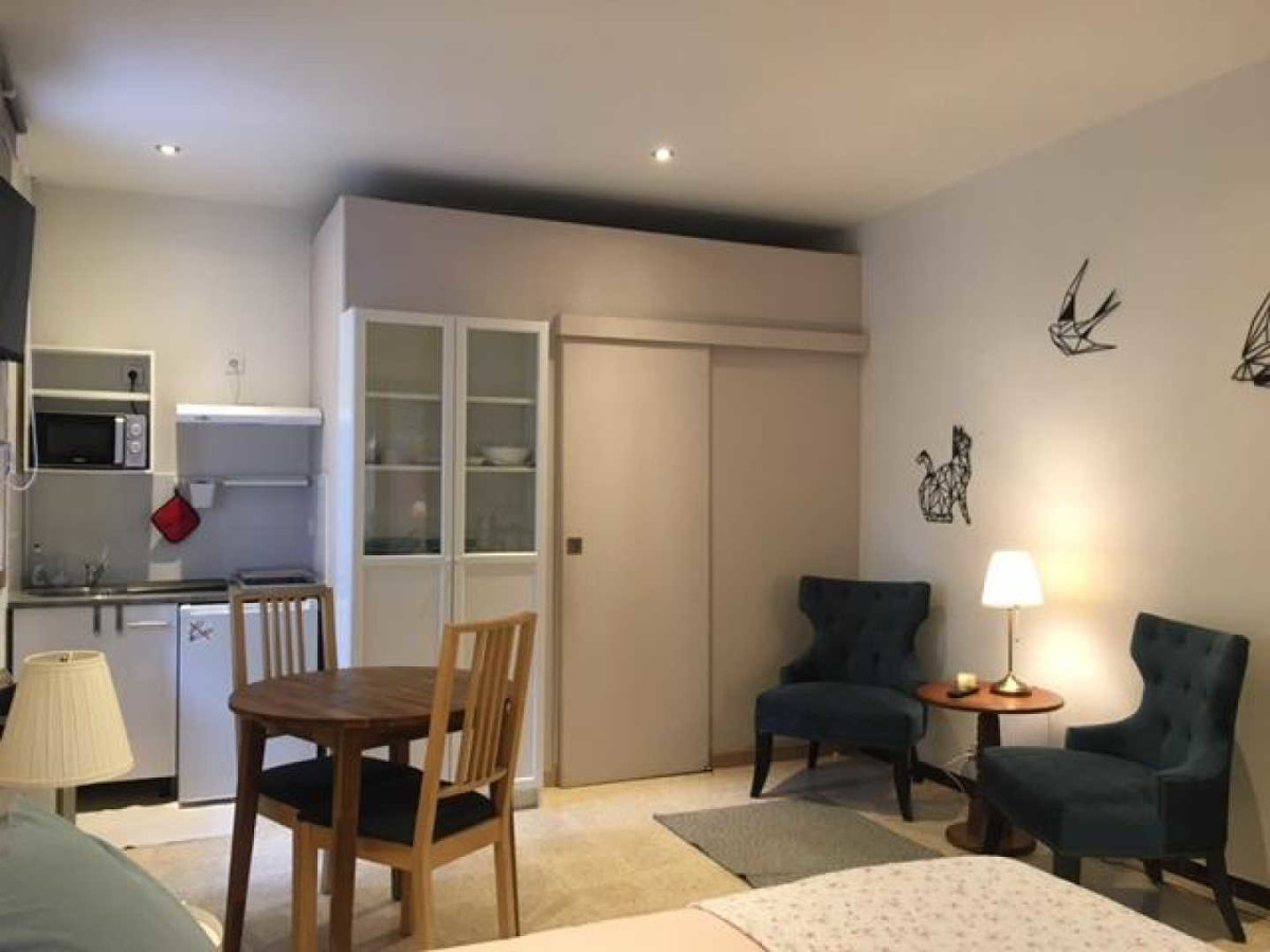 Profitez d’un studio très fonctionnel. Vous apprécierez le lit 140×200, ainsi que le coin salon pour vous reposer après vos visites. L’espace cuisine est composé d’une table ainsi que d’une kitchenette. La pièce à vivre est complétée par une salle d’eau.
