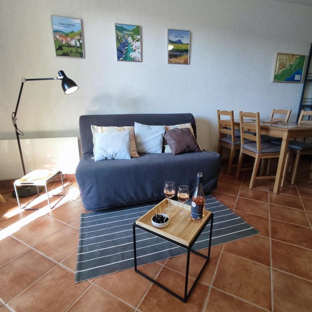 Le canapé-lit du salon peut servir de couchage d’appoint sur demande.