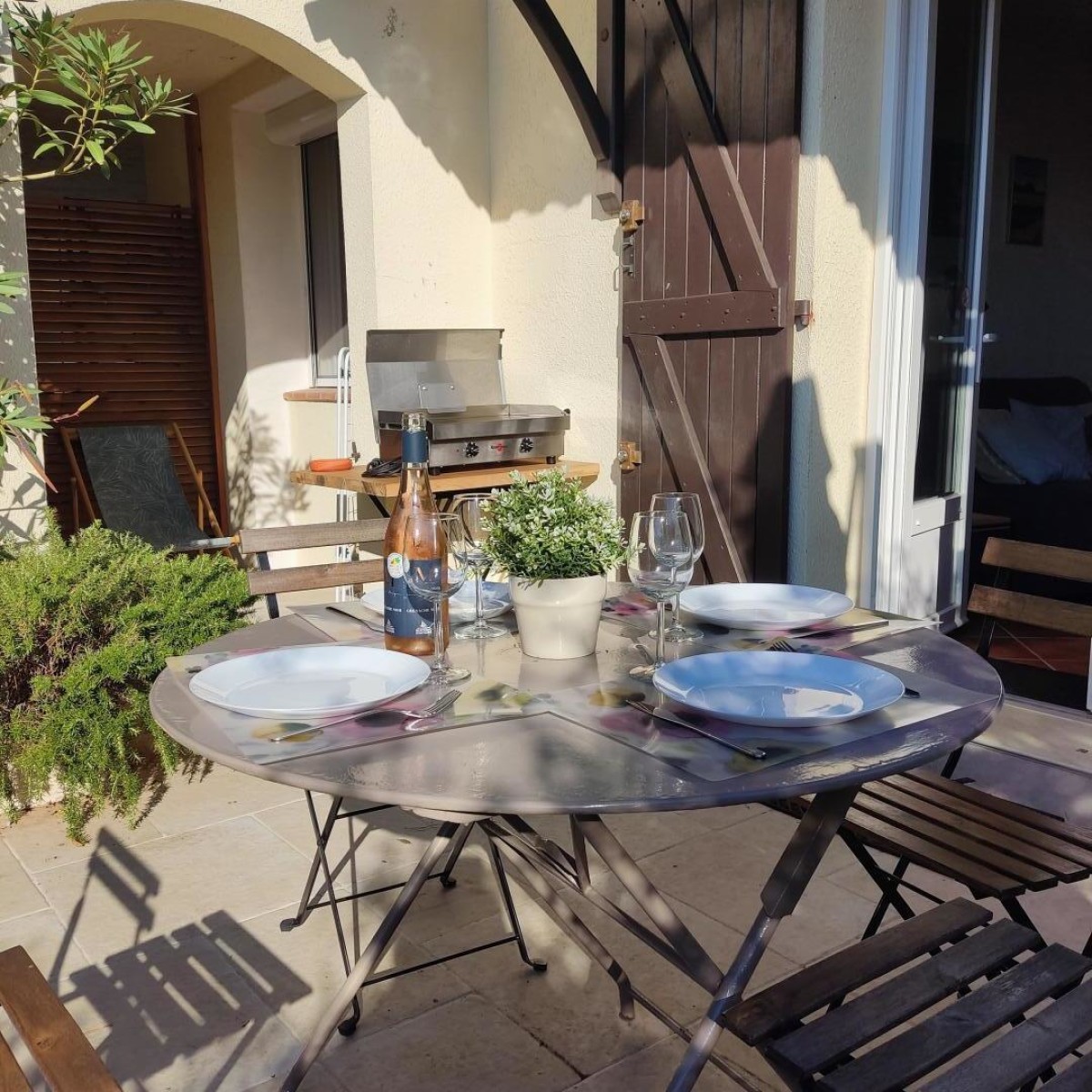 Le vrai atout de ce gîte est sans aucun doute sa terrasse. Sans vis-à-vis, cet écrin de verdure vous permettra de profiter du soleil, de vous reposer ou de prendre vos repas. Une plancha électrique est à votre disposition.