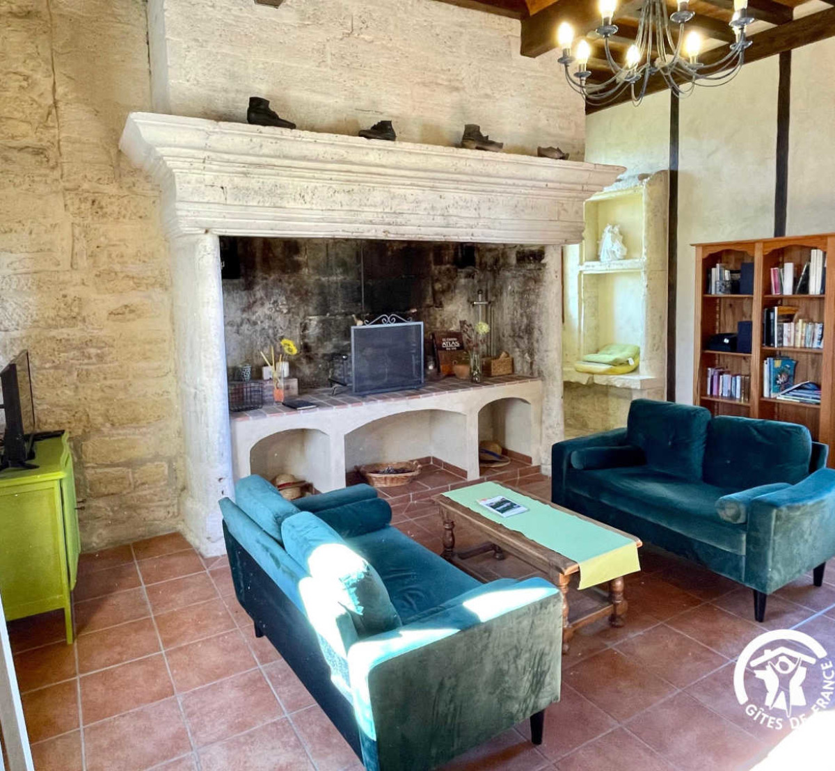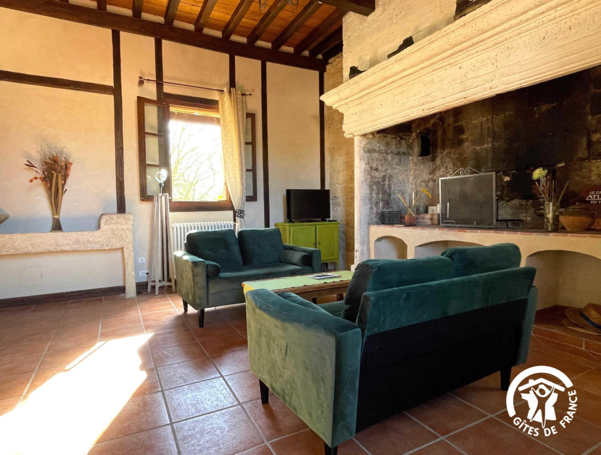 Au premier étage, vous trouverez un salon lumineux accompagné de son imposante cheminée. Il est également équipé de deux canapés et d’une télévision cablée. Une buanderie (lave linge) est à votre disposition dans la pièce annexe.