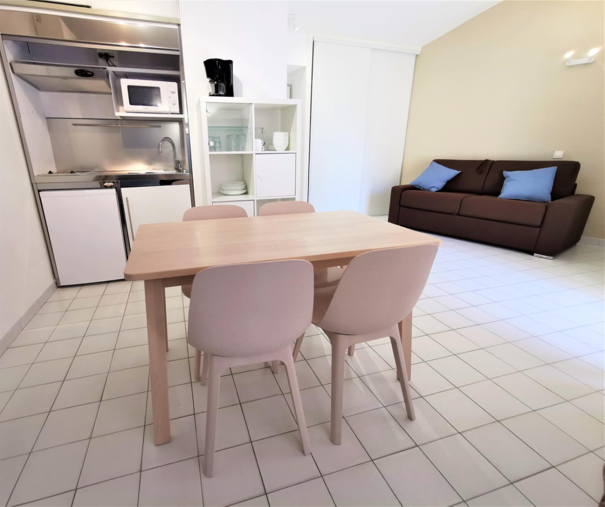 Le gîte est composé d’un coin cuisine équipé, séjour avec canapé convertible, coin nuit avec 2 lits en 90, et d’une salle d’eau avec douche et WC, TV, WIFI, climatisation.