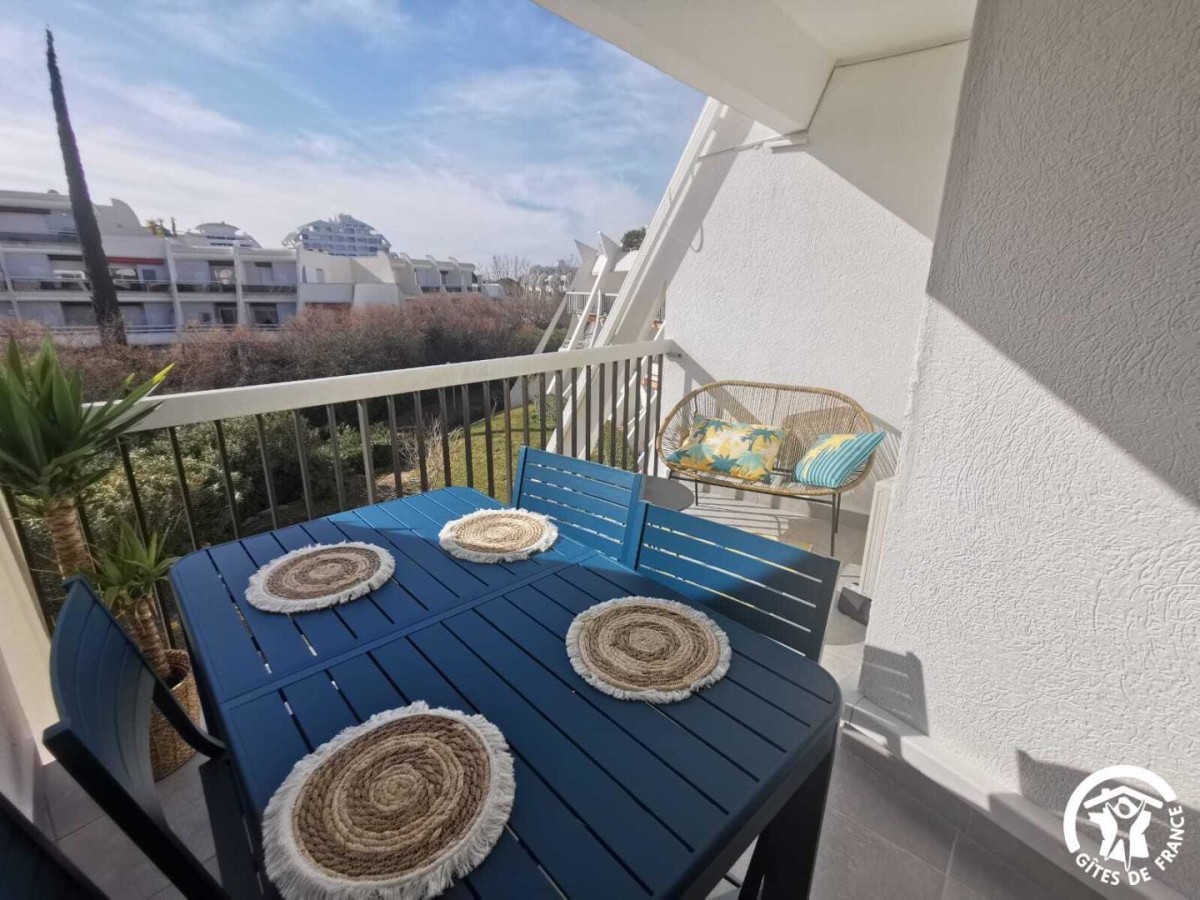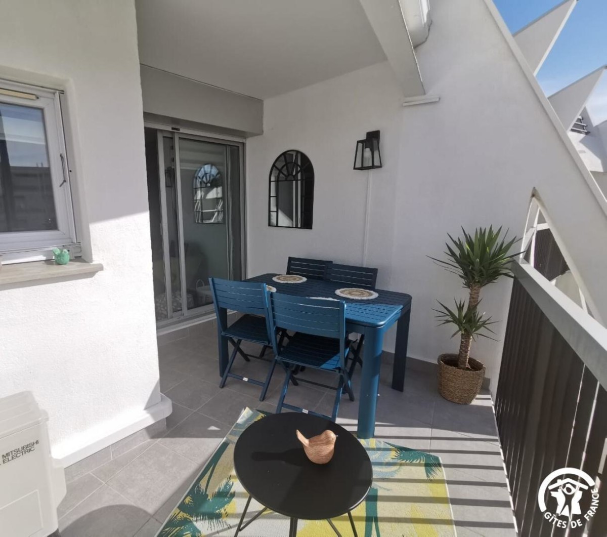 – Un balcon-terrasse avec table et plancha, parfait pour profiter du soleil de l’Hérault et de l’air de la mer !