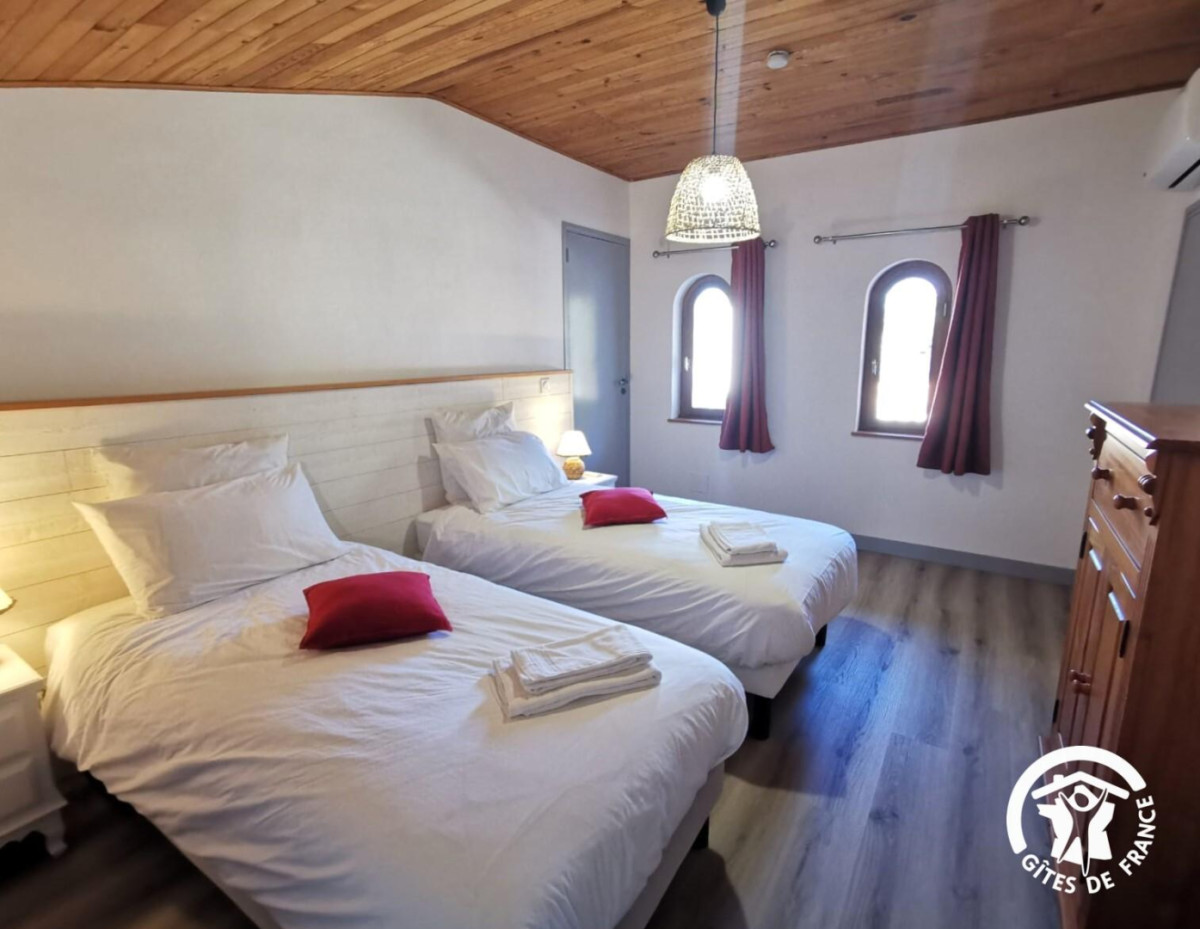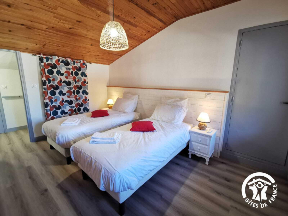 Profitez des beaux jours grâce à sa terrasse privative composée d’un salon de jardin, bains de soleil, barbecue et enfin le grand jardin ainsi que l’espace piscine qui est partagé entre les 2 gîtes. (ouverture de 9h à 19h)
