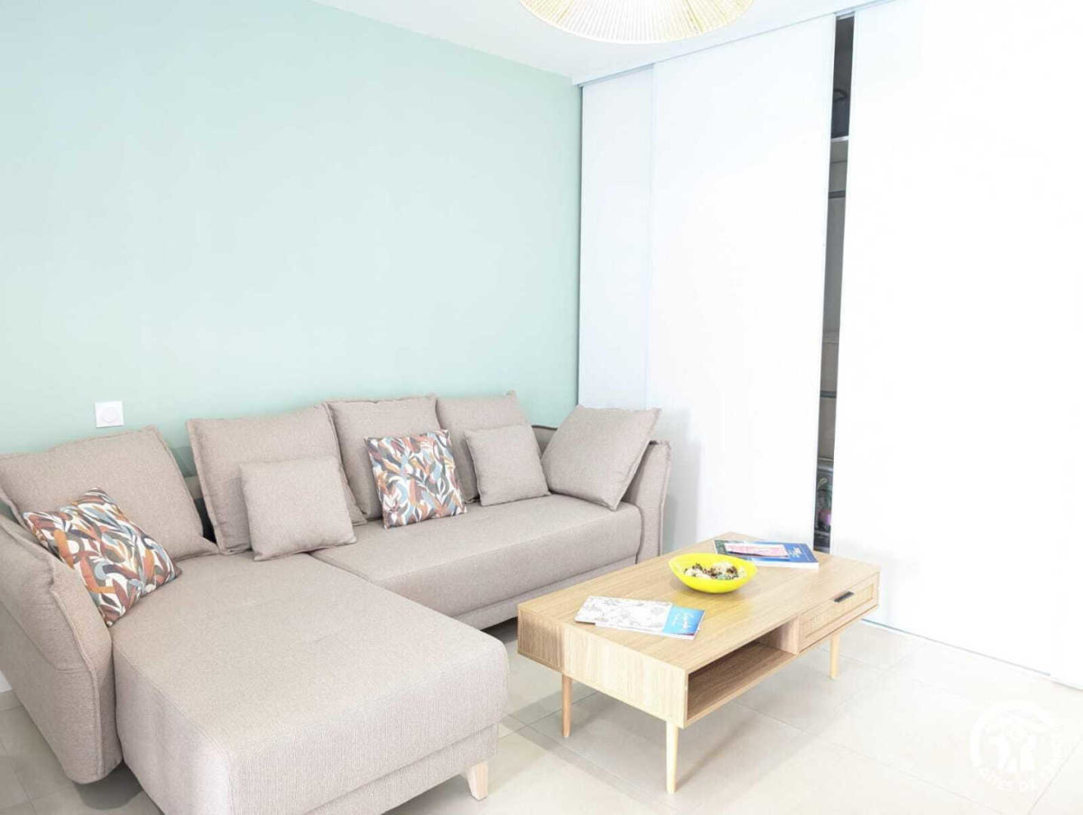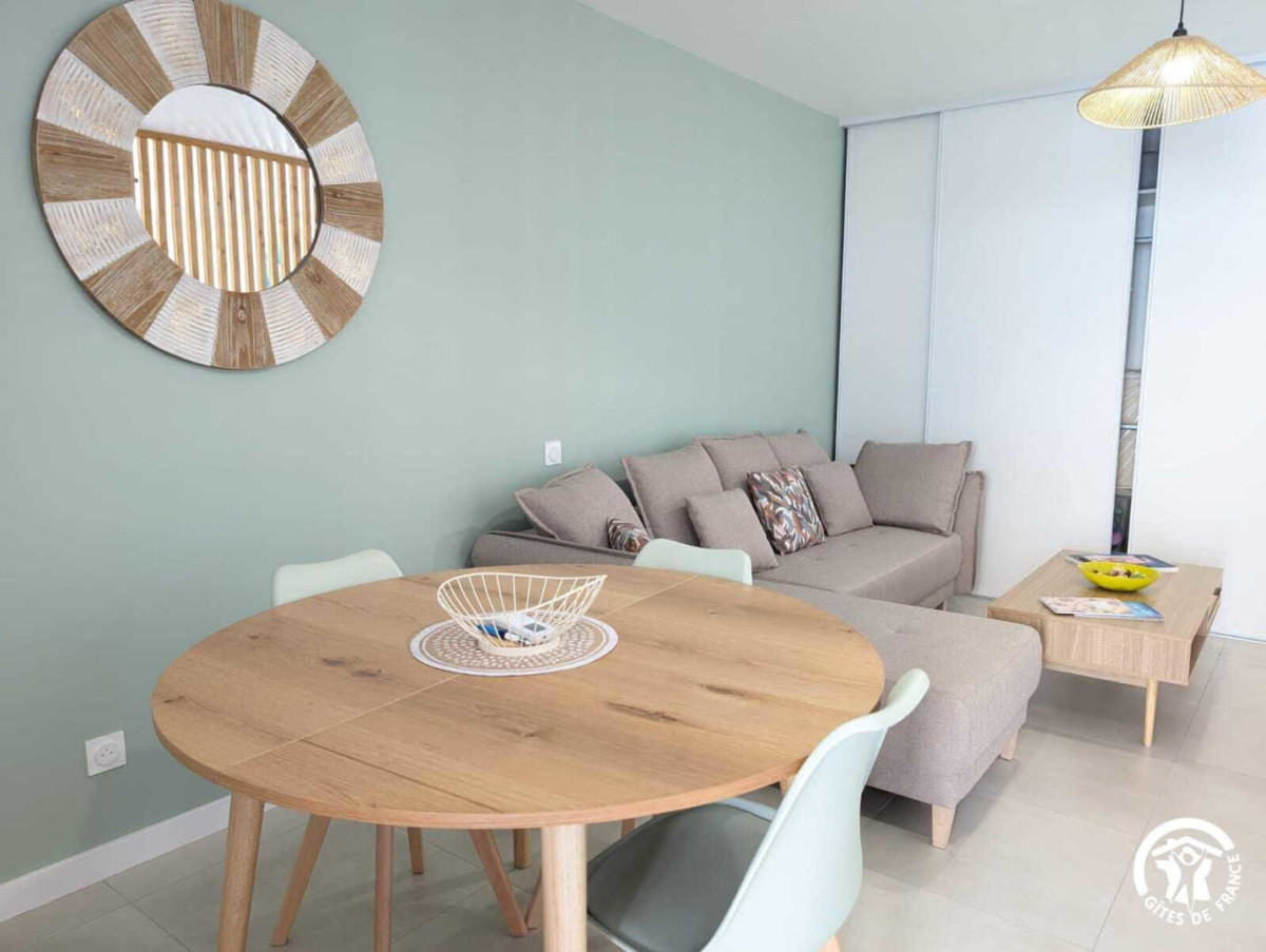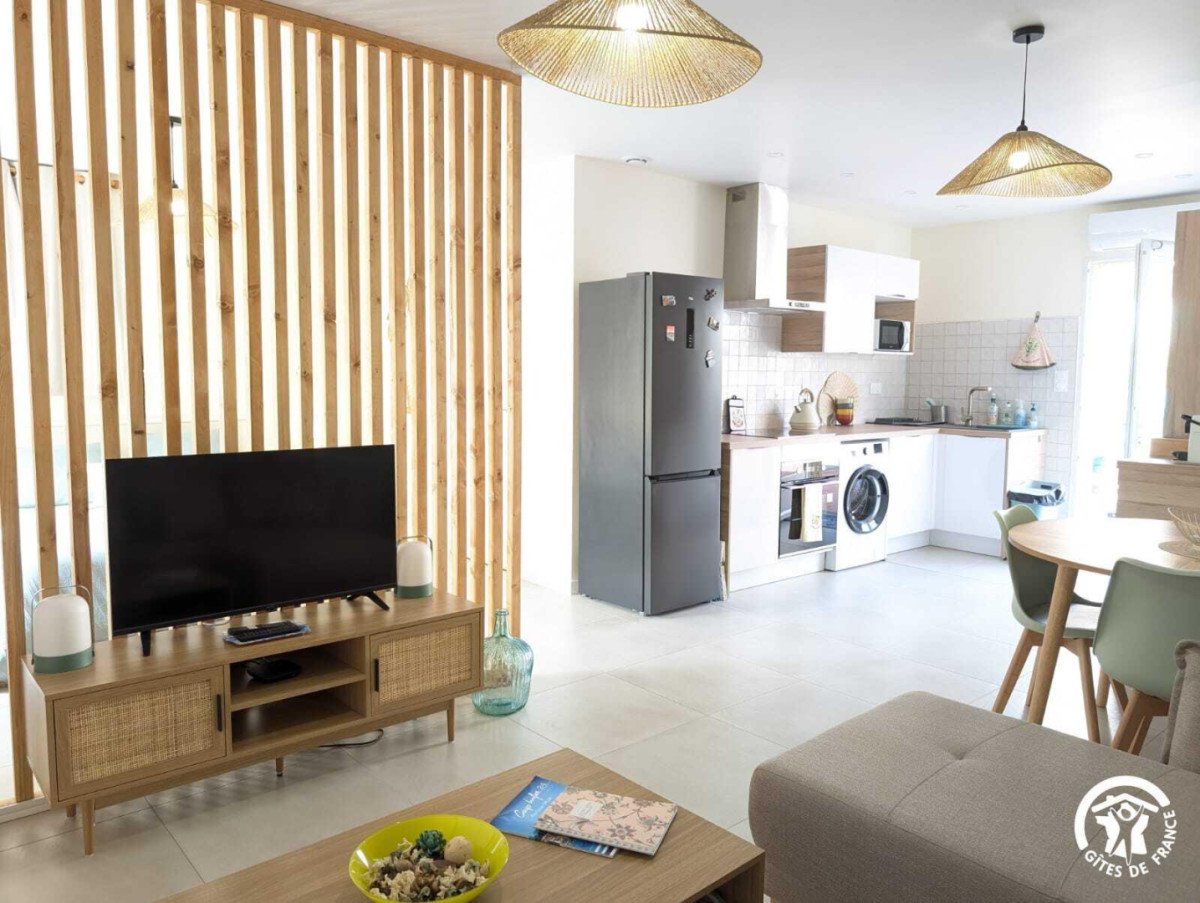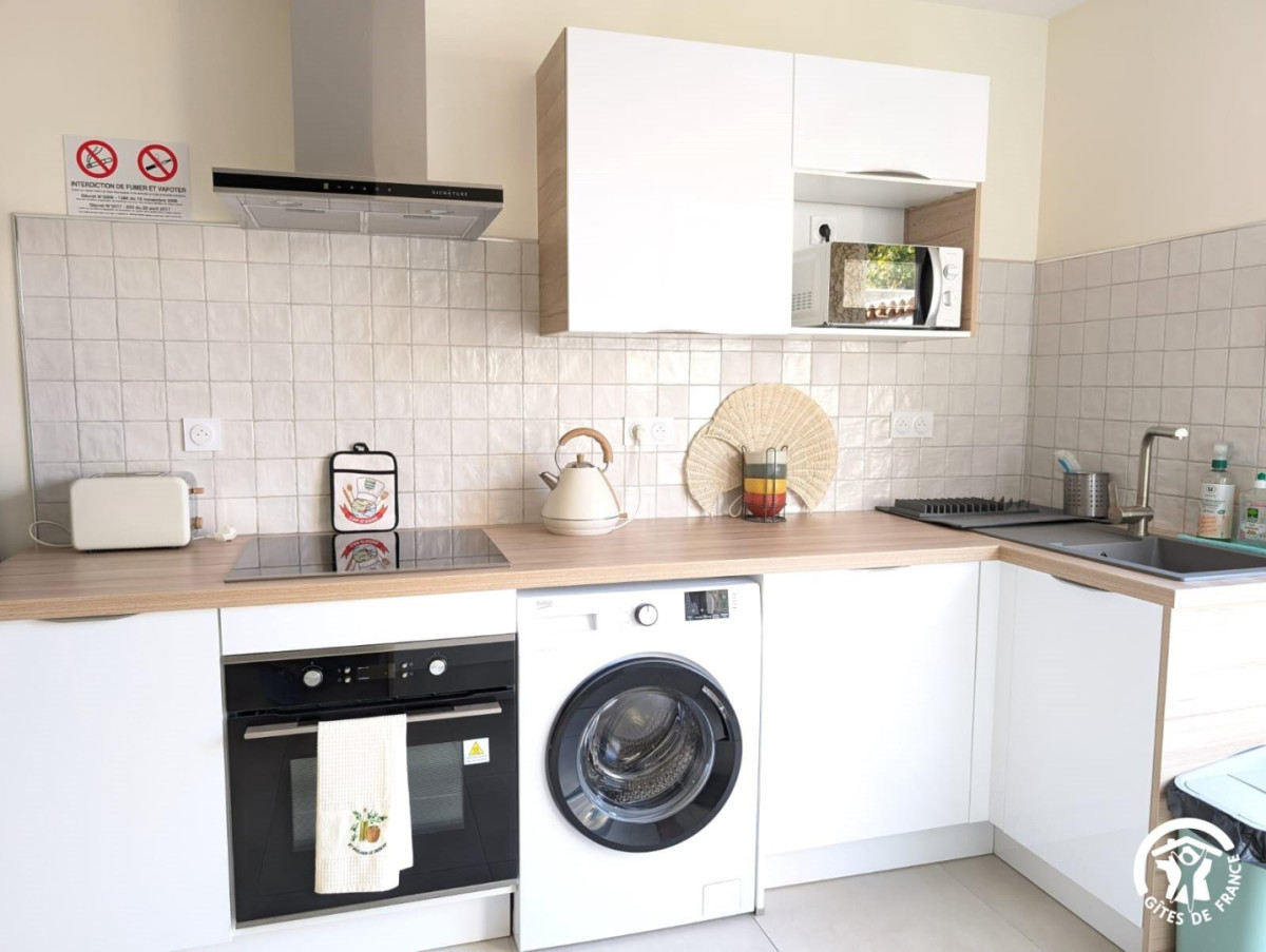 – Un coin salon : canapé, table basse, télévision (Netflix, wifi), table à manger et une cuisine tout équipée (frigo, four, micro-onde, lave-vaisselle, cafetière Nespresso (capsule fourni + thé, tisane), grille-pain, bouilloire et tout le nécessaire pour cuisiner.