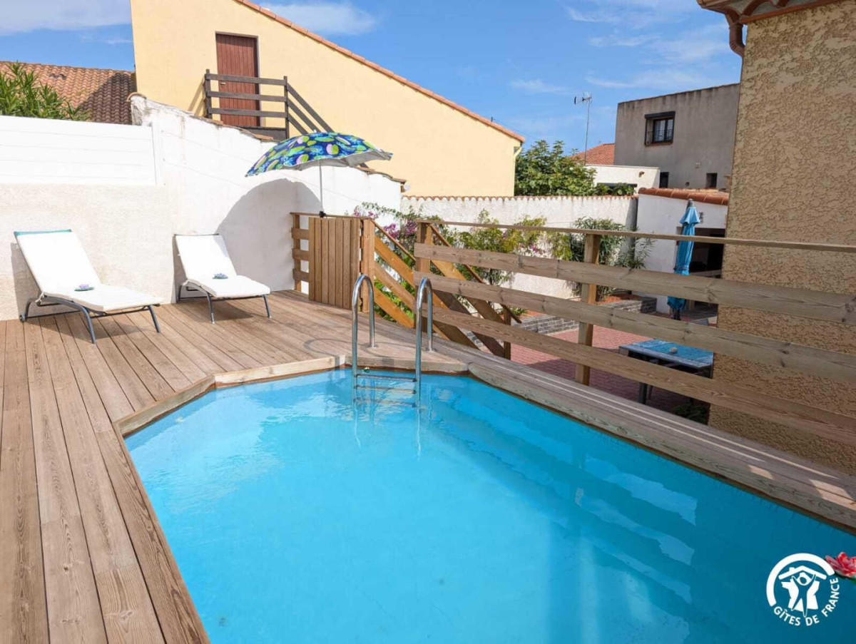 – Une piscine (4,35*2m) partagée avec les propriétaires. Piscine sur une terrasse surélevé fermée par une barrière et portail en bois. Transats.
