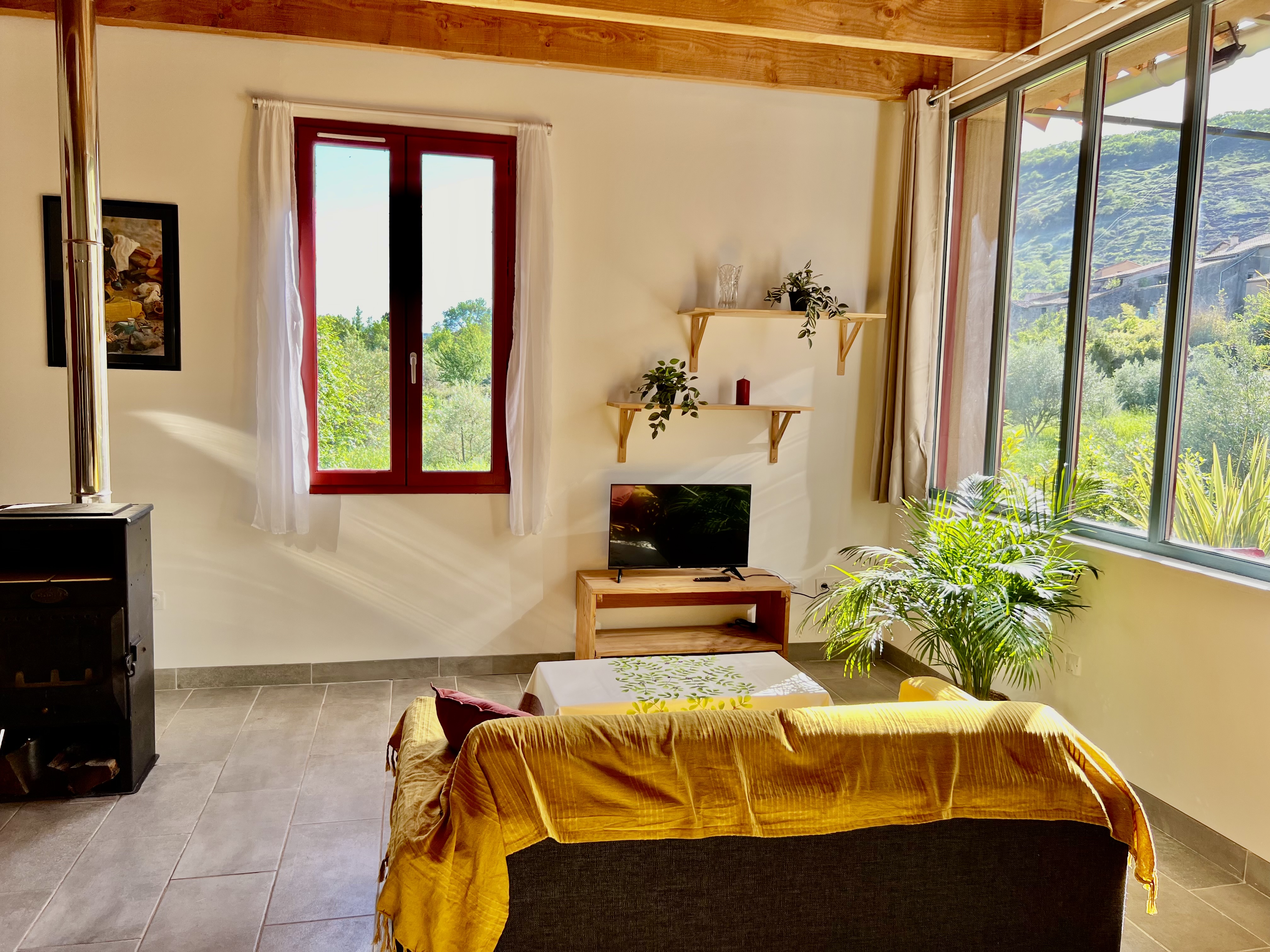 A quelques pas du centre d ‘Octon, imaginez un ancien atelier, beaux espaces, grandes verrières, hauteurs sous plafonds, lumineux, vue sur le charmant village, mais aussi sur le superbe et généreux potager que Damien travaille avec beaucoup de soin pour le plaisir de ses hôtes. Une jolie adresse tranquille tout près des départs de randonnée mais aussi du lac du Salagou.