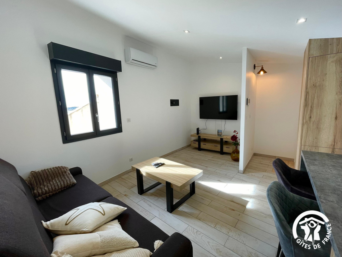 Ce gîte mitoyen à la résidence des propriétaires s’étend sur 2 étages, dans une bâtisse rénovée arborant une charmante façade et offrant une vue exceptionnelle sur le lac de Thau.
