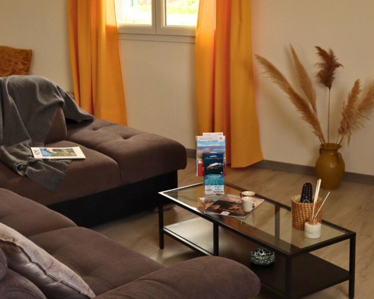 grand canapé + canapé liseuse, télévision, climatisation, wifi.