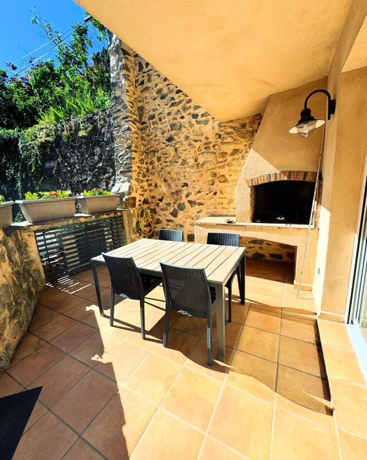 – A l’extérieur, une belle terrasse avec salon de jardin et barbecue, idéal pour profiter du soleil de l’Hérault !