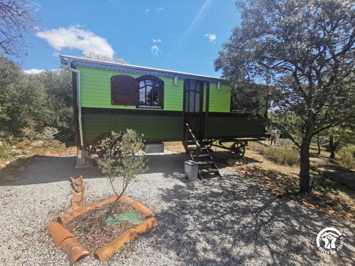 Sur le domaine des propriétaires, vous trouverez cette roulotte de 20 m² sur un hectare de terrain aménagé pour une expérience insolite !