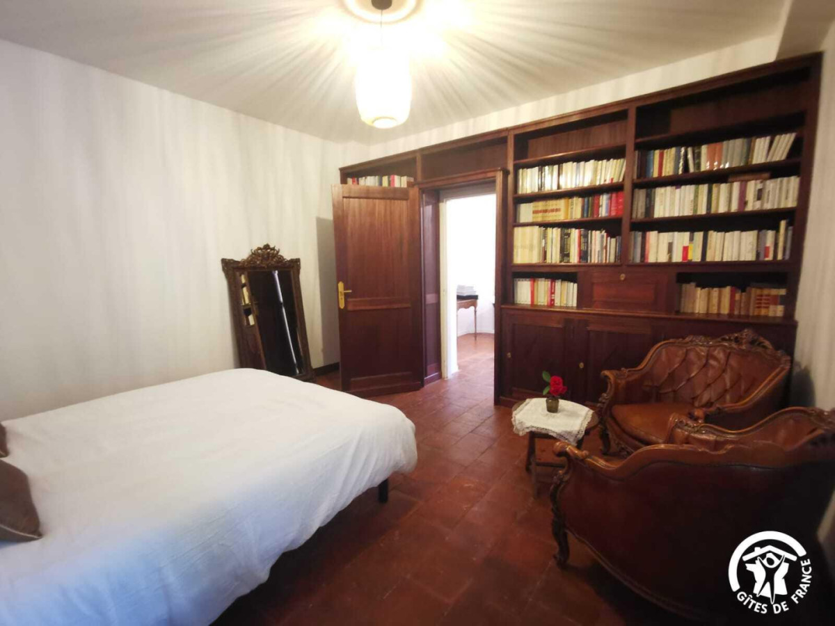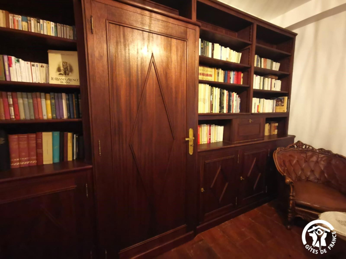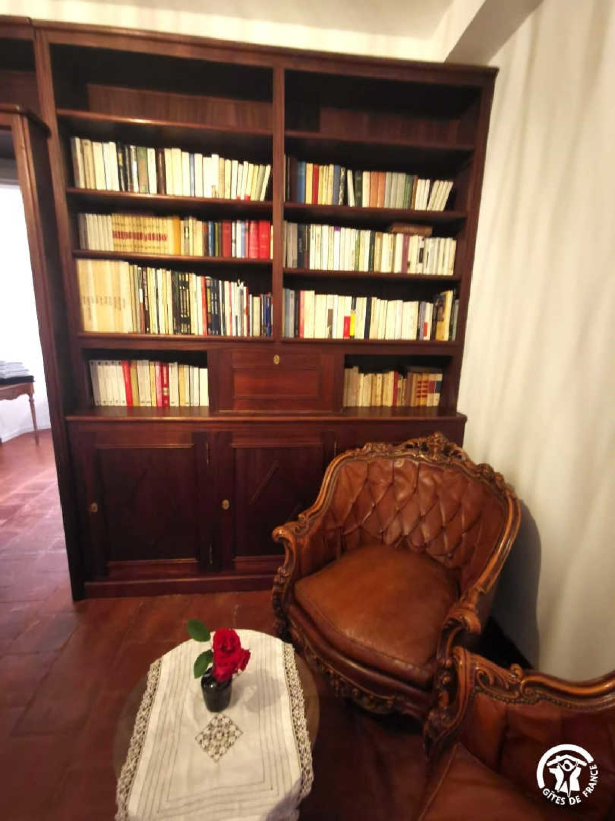 A une vingtaine de kilo – Située au rez-de-chaussée de la maison d’hôtes, avec un accès par l’extérieur, séjournez dans cette très belle chambre pour deux pleine de charme qui possède un lit double avec lampes et tables de chevet, deux fauteuils en cuir, un miroir ainsi qu’une grande bibliothèque dans un style ancien. Cette chambre possède également une grande salle d’eau avec baignoire, douche, WC et vasque avec miroir.