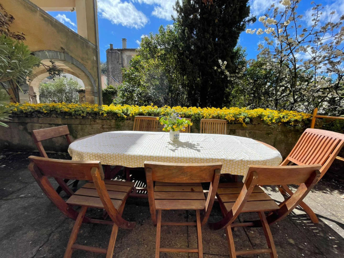 A l’extérieur, vous pourrez profiter d’un bel espace jardin commun avec vue directe sur la rivière à deux pas, un endroit parfait pour vous reposer et profiter du soleil de l’Hérault et de la fraîcheur de Lunas !